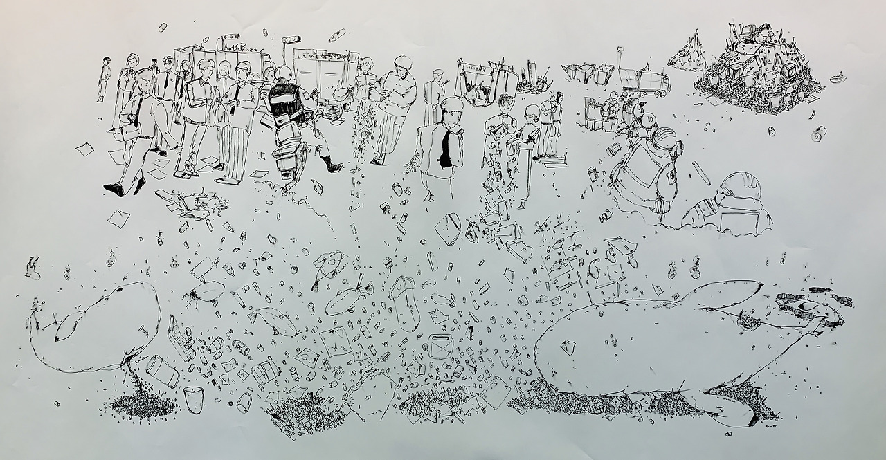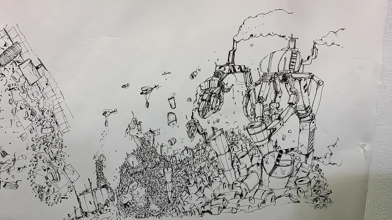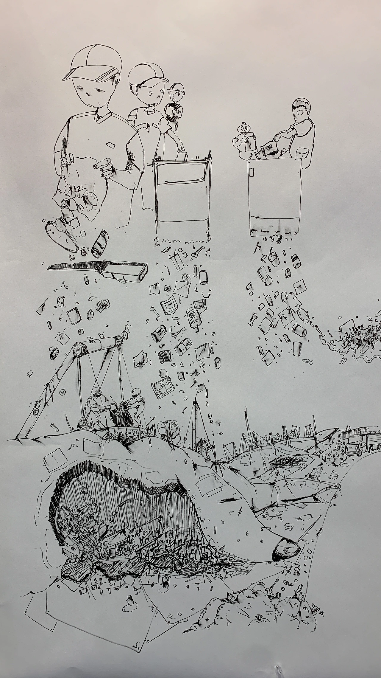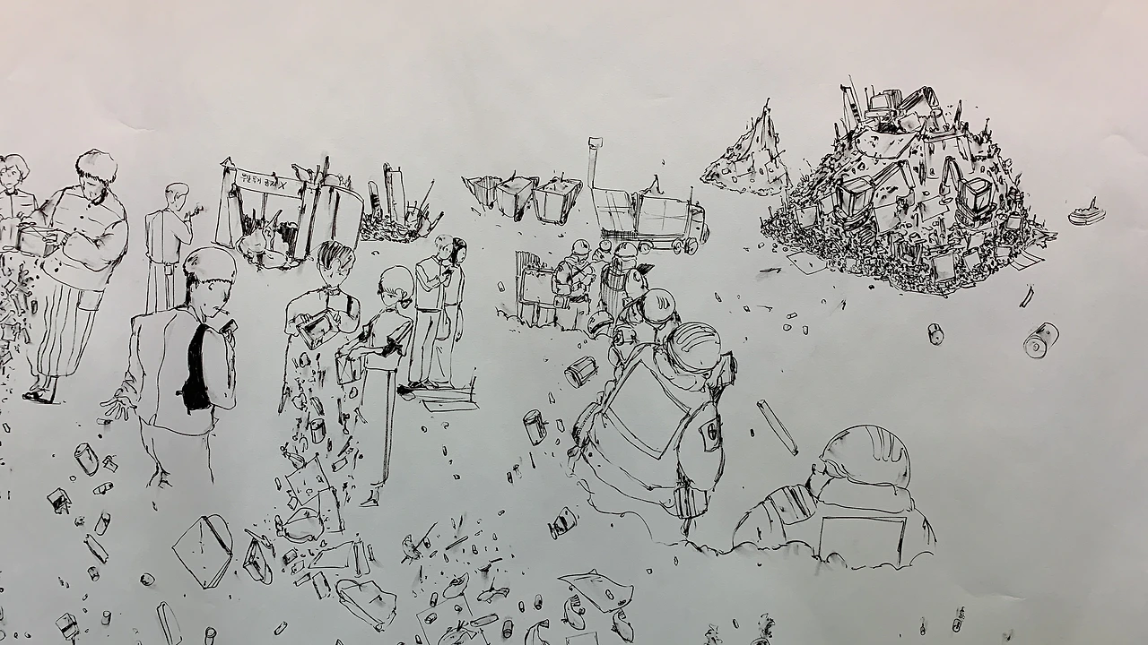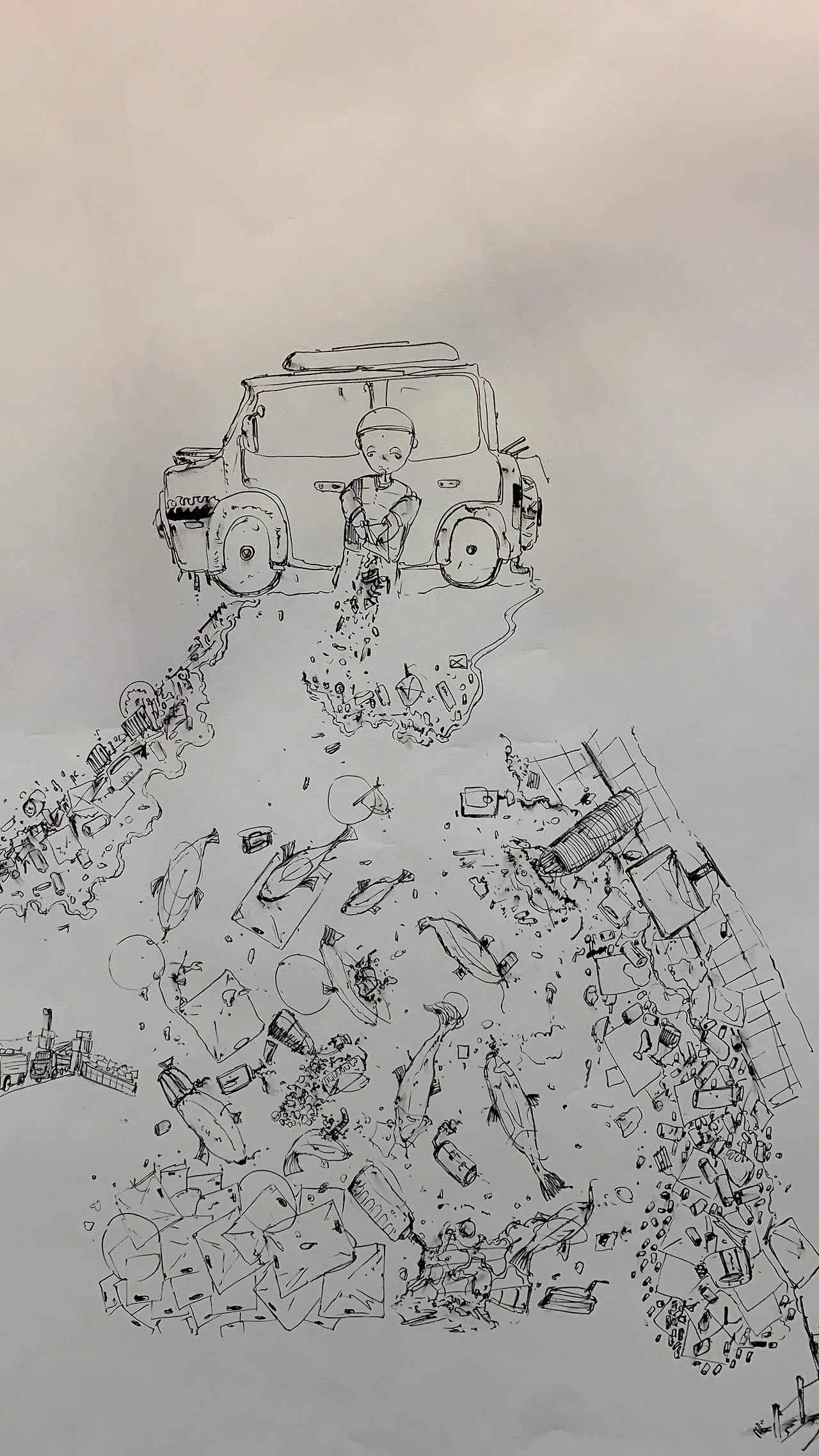환경이라는 주제 아래 이삭은 첫째와 둘째 날은 무분별한 쓰레기에 관한 이야기를 그렸다