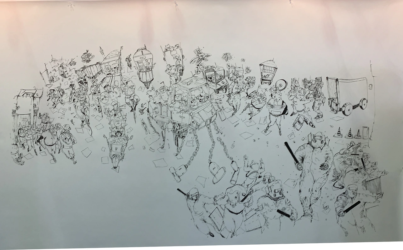 그리고 셋째와 넷째 날은 아프리카 돼지열병에 살처분되는 돼지를 보며 돼지의 입장을 상상해보며 그렸다