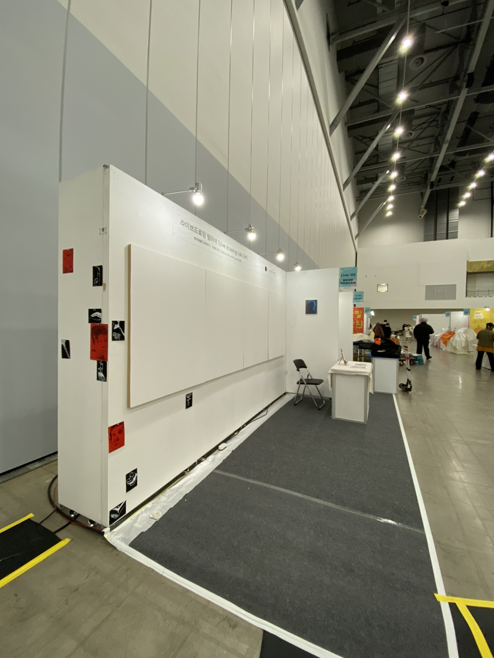 오늘부터 3일간 이삭은 흰색의 200호 합판에 자신만의 이야기를 쏟아 낼 것이다