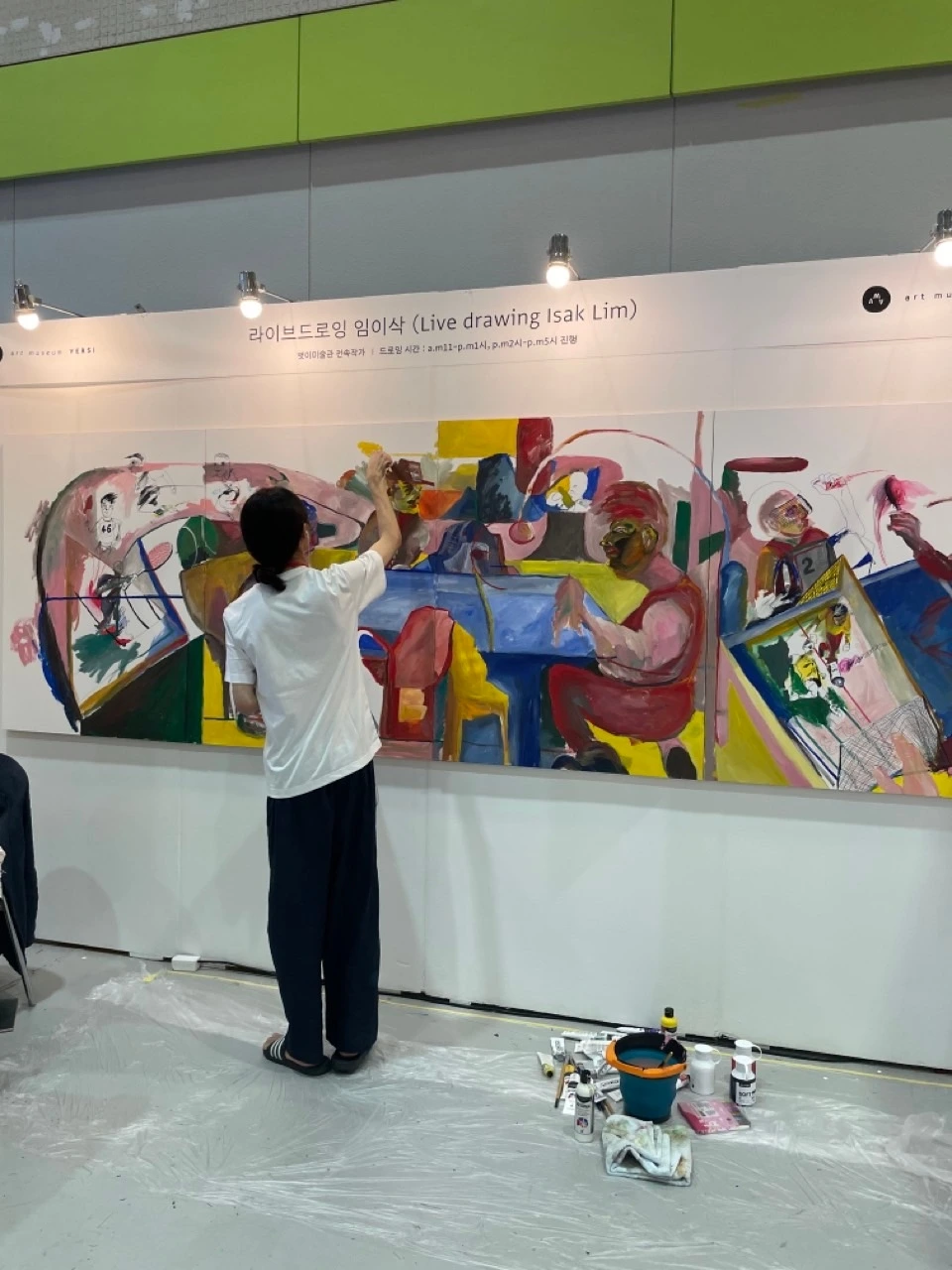 그런데 작년부터 이삭은 50호 그림합판을 4장 이어 붙여 라이브페인팅을 하기 시작했다