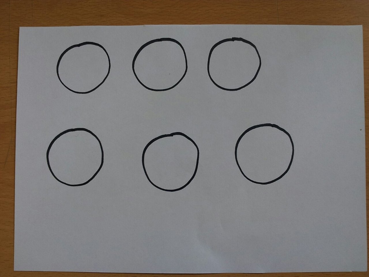 오백원 동전만한 크기 동그라미6개 그려주세요