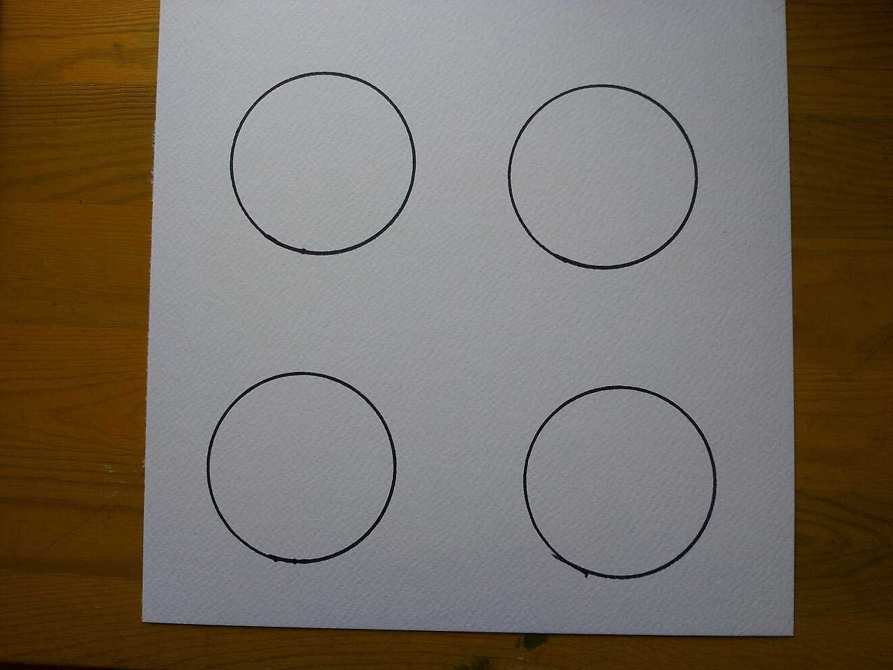 도화지에 컵을 대고 동그라미 4개를 그려주세요