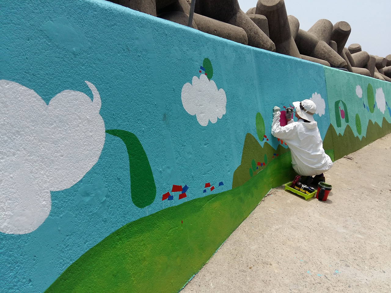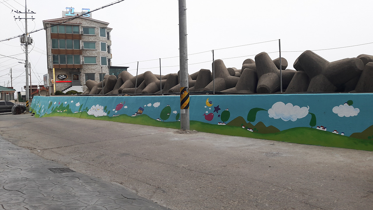 벽화 작업 내내 큰 비소식이 없어 다행이다
