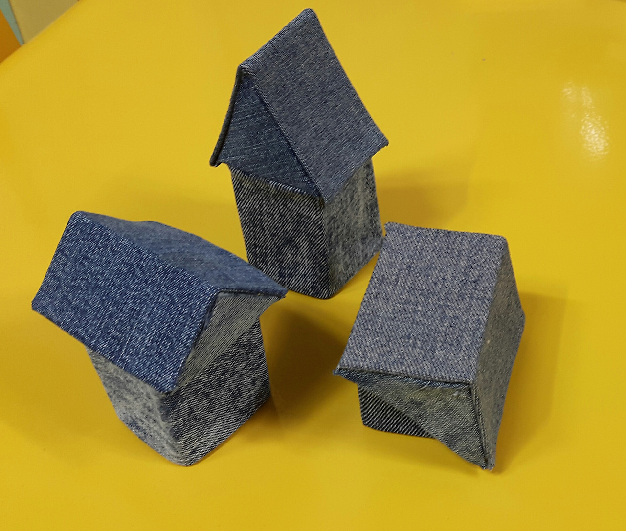 도화지를 잘라서 사진과 같이 지붕과 벽체를 접어보세요