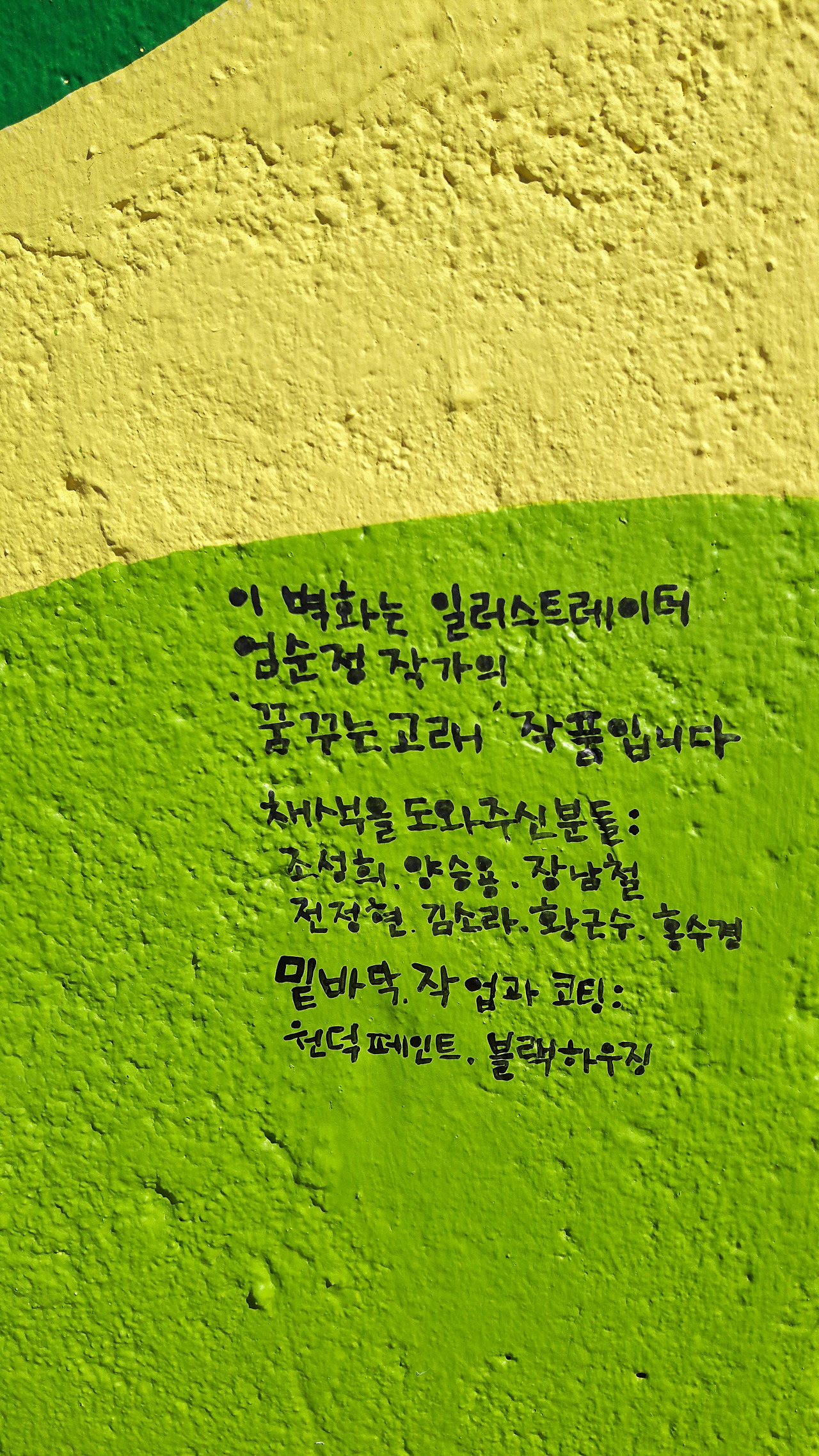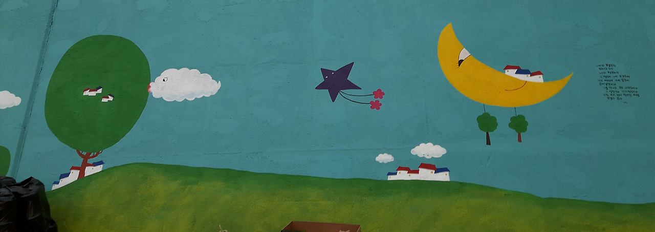 새벽6시면 일어나 가족들을 챙기고 현장에 8시면 도착해 이것저것 작업 준비를 해놓고 저녁6시면 채색도와주시는 분들을 보내고 혼자서 저녁7시까지 벽화 작업을 하였다