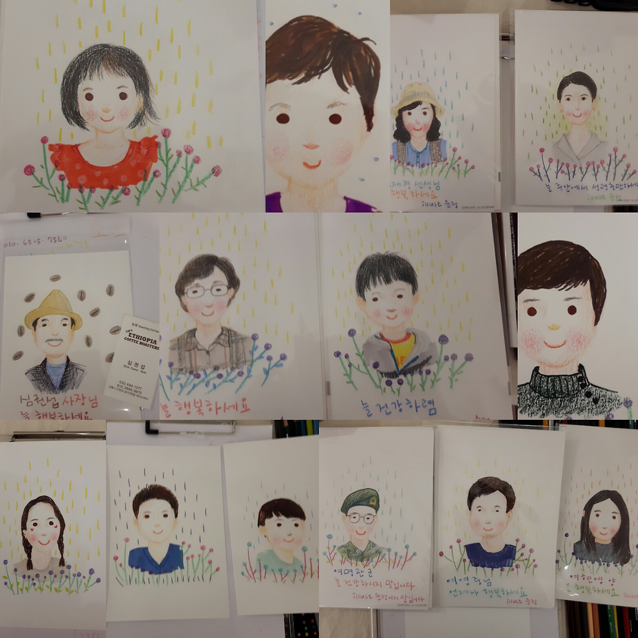 대박 인기를 친 캐리커쳐를 그려드려야겠다고 생각하면서