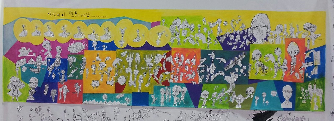 작년은 캔바스 위에 아크릴 물감으로 만화를 그리고 색칠했지만 이번은 만화 드로잉입니다