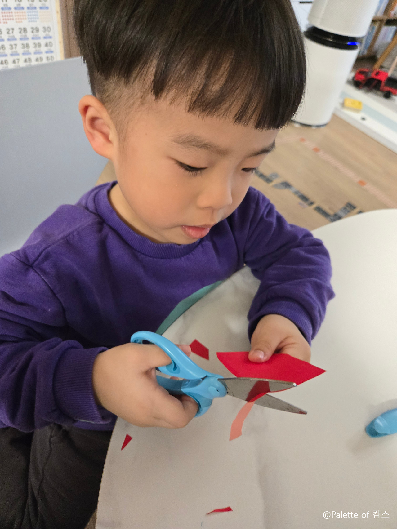 ( 어른이 나선형을 그려주고, 아이가 자르게 도와줍니다.