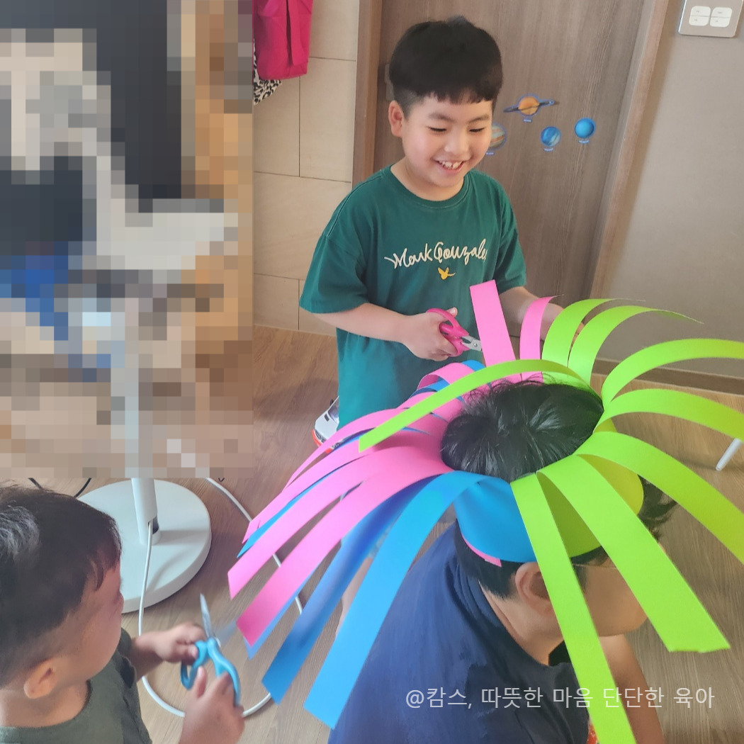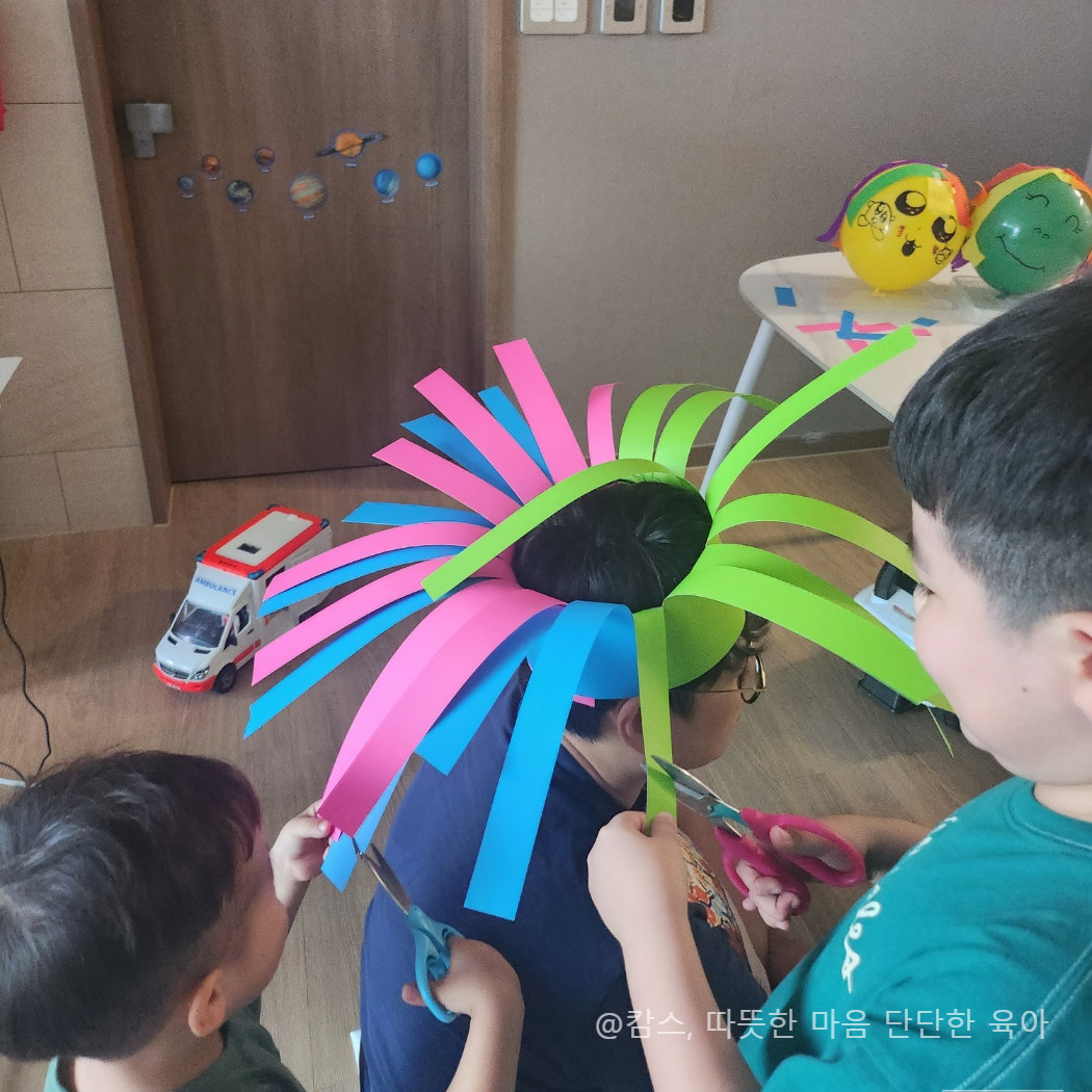아이들과 미용실에 다녀온 후, 놀이로 활동하면 좋습니다.