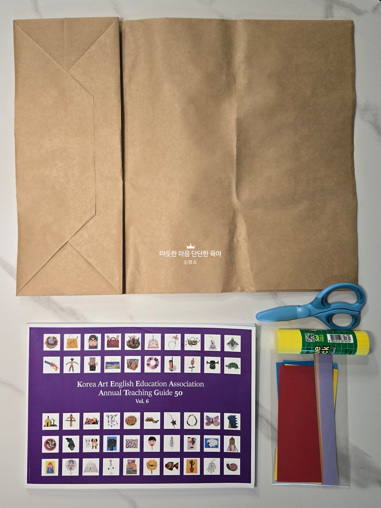 ▶준비물: 크라프트 종이가방, 색종이, 가위, 풀, 연필 또는 펜 등