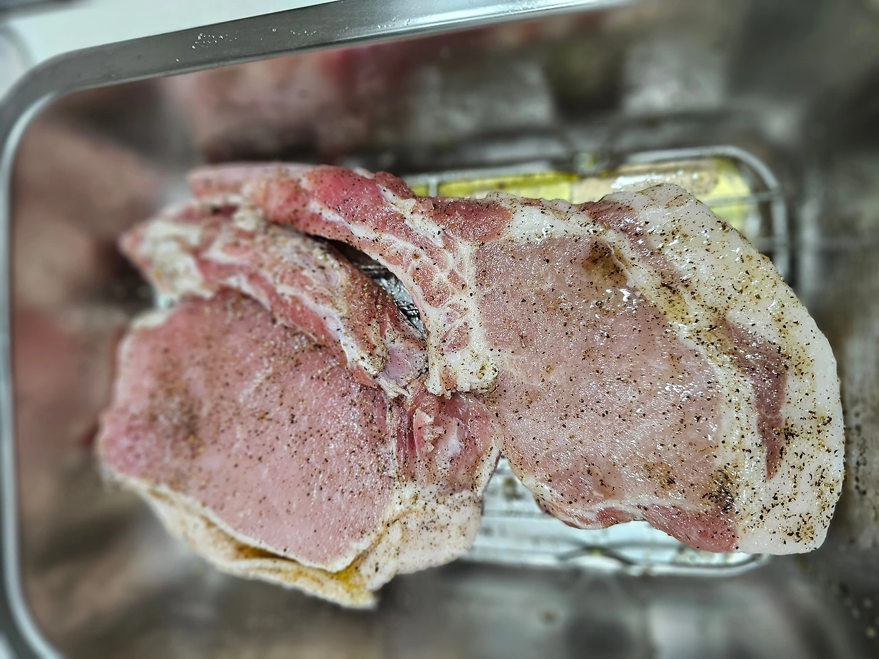 고기가 두꺼워 안쪽까지 양념이 잘 안 베이니, 듬뿍 겉면에 뿌리라고 해서, 처발처발 했더니!