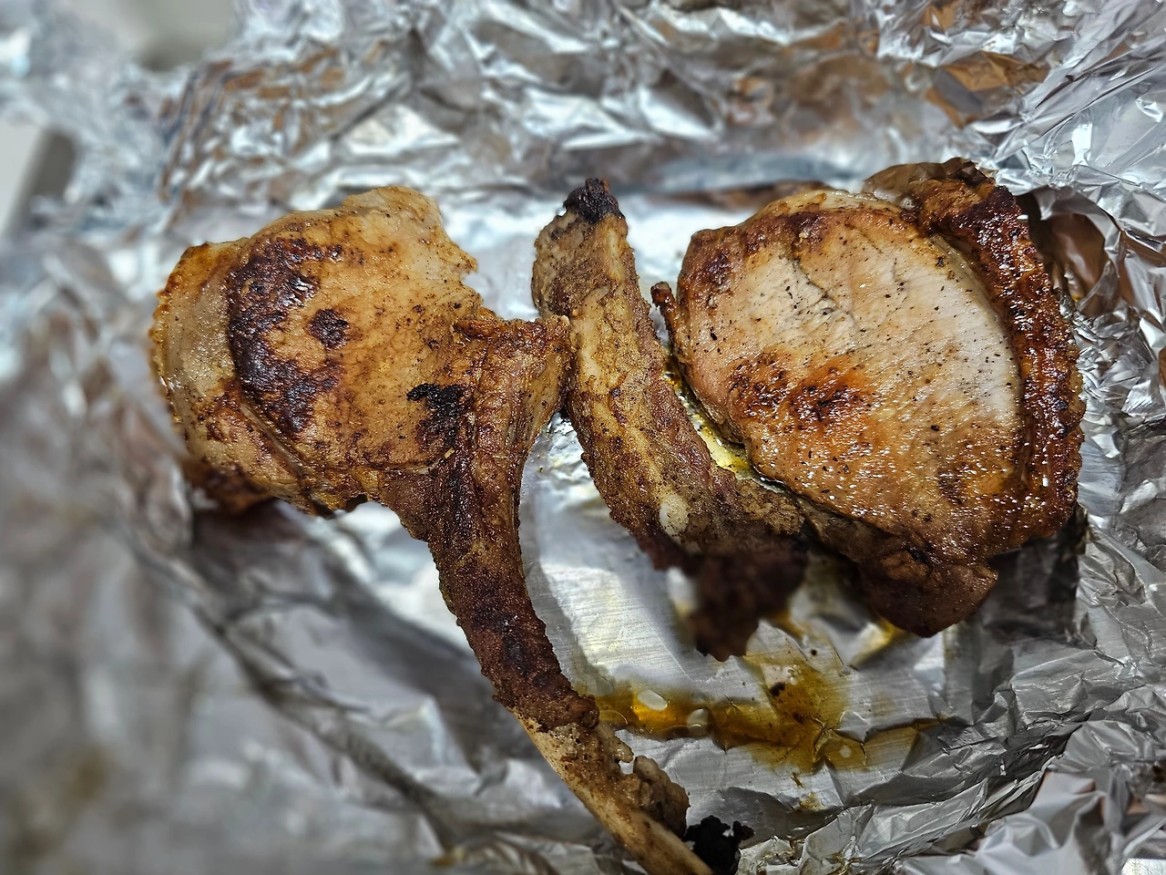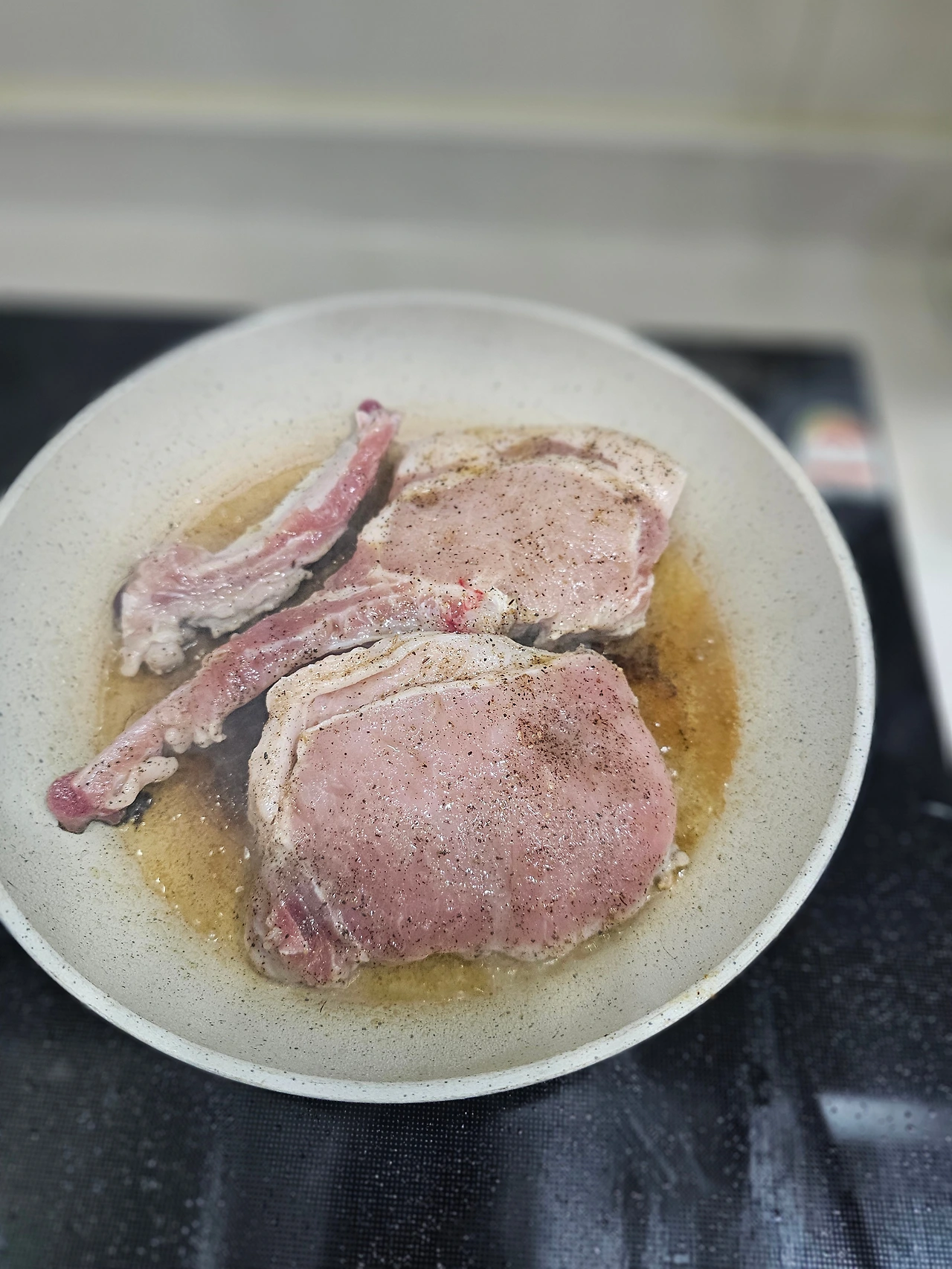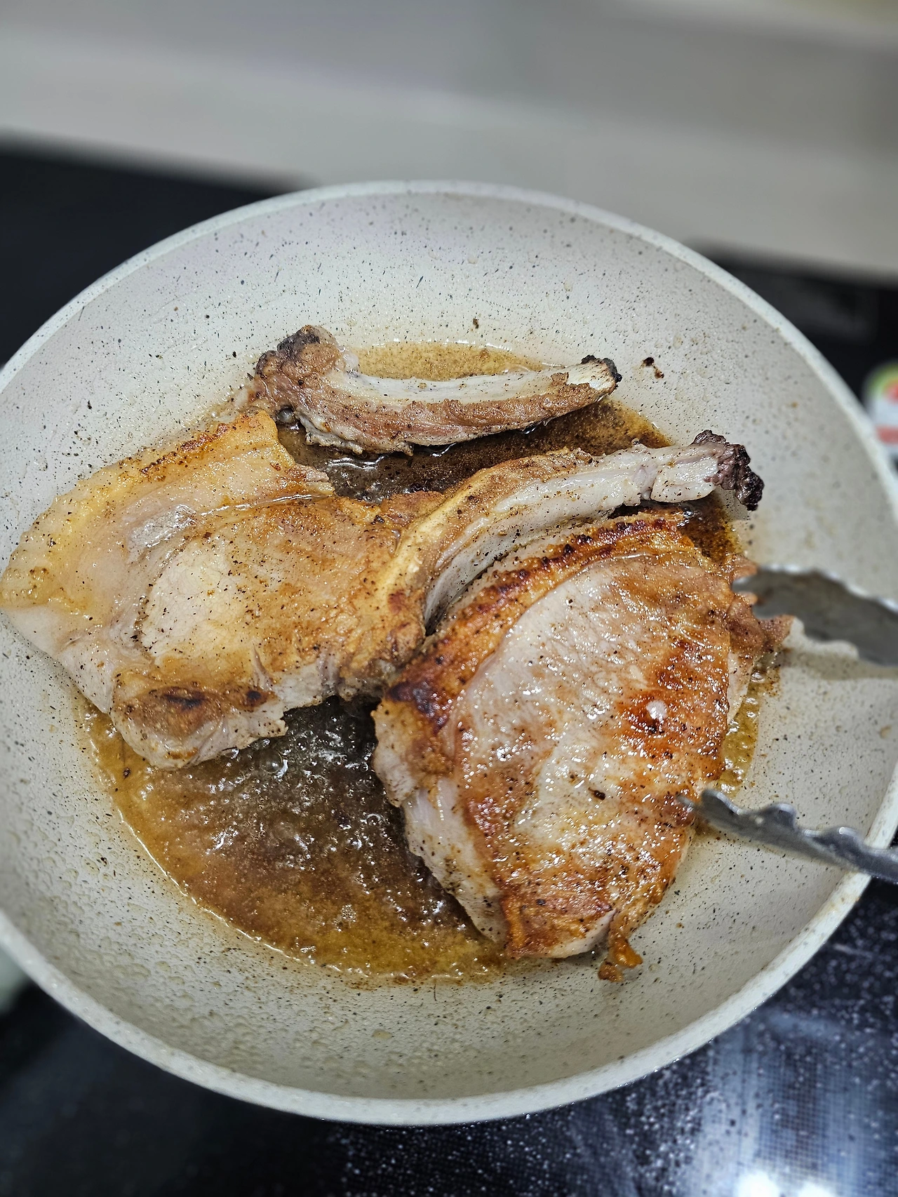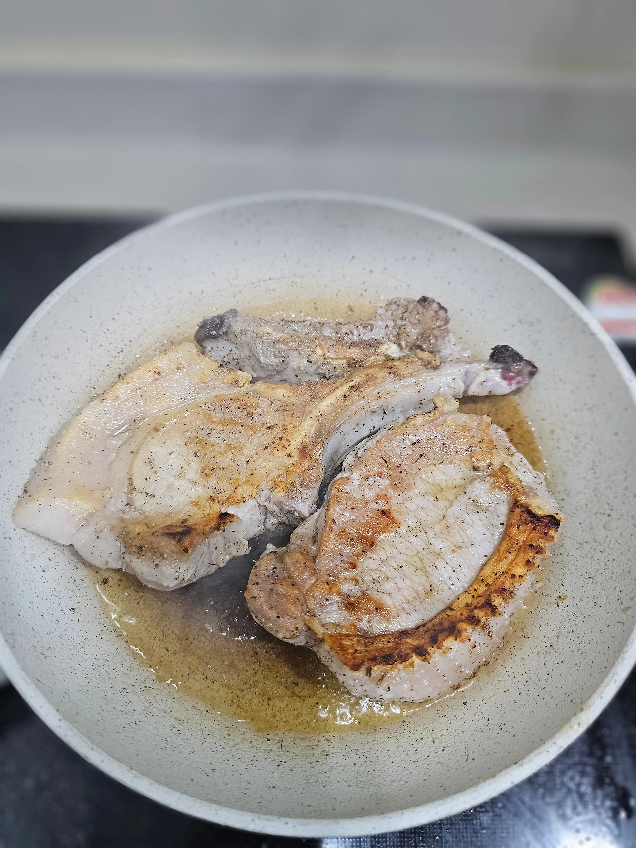 미리 사두었던, 돈마호크 고기를 꺼내 냉기를 빼고, 레시피를 따라 고기를 굽고, 뤠스팅도 시킨다.