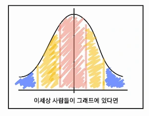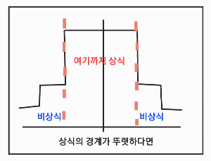 그럼 상식이라는 측면은 저 그래프에서 어디 즈음까지로 색칠할 수 있을까. 정답은 없다. 저 그래프가 만약 이런 모양이었다면 상식과 상식밖이 좀 더 구분하기 쉬웠을 것 같다.