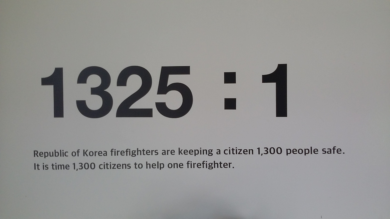 '1325:1' 우리의 슬로건이다. 대한민국 소방관에 대해서 알아가던중 소방관 1명이 보호해야하는 시민의수가 약 1300명정도된다는 조사를 하게되었다. 우리는 생각했다. "그렇게나 많이?" 우리는 역으로 시민들이 소방관 1명을 응원하는 문화 그리고 존중받아야 마땅할 소방관을 기억하는 문화를 패션을 통해 만들어 나가고싶었다. 그래서 구체적인 숫자 1325명을 정했다. "1325명의 시민들이 1명의 소방관을 응원하고 존중할때까지 우리 브랜드가 알린다."