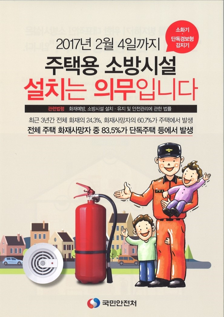 2017년 2월 4일까지 주택용 소방시설 설치가 의무라는 이야기를 들었다. 국민안전처와 소방서에서 대대적으로 홍보를 하고있었지만 많은 사람들이 이부분에 대해서 잘인지하지 못하는것이 안타까웠다.