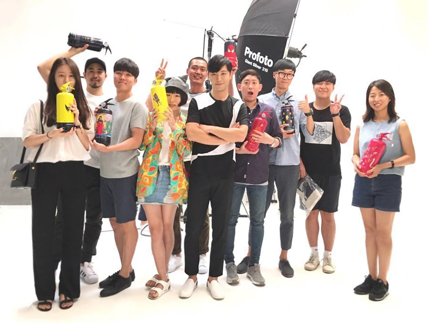 다행히 소화기 업체를 잘찾아서 디자인 소화기를 만들수있었다. 그리고 프로젝트 초기에 태양의 후예 배우 진구씨가 소방관을 응원했으면 좋겠다해서 계속 연락을 드렸는데 매니져님과 진구씨가 혼쾌히 승락해주셨다. 한류스타이신 진구씨는 오랜기간동안 한결같은 배우셨고 그만큼 겸손하셨다.