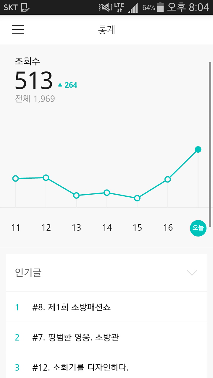 초기에 시작할때 블로그에 진행과정에 대해서 자세히 남겼었다. 보는 사람은 많이없었지만 대신 한번 알게된 사람들은 적어도 우리가 무엇을 하는곳인지 무엇을 하려고하는곳인지정도는 인식하게끔 글을 작성했다. 덕분에 이후에 우리에게 제안이오는 곳들이 사전에 블로그를 읽어보고 오는사람들이 많게되었다. 하지만 블로그도 파워블로그가 될수있는 노하우가있는거같다. 그 노하우를 몰라서 아직은 투데이수가 적다. 블로그는 일기와같이 스토리를 사용했다면 브런치는 경험이나 지식적인 부분 혹은 정보부분을 공유하려고 글을 쓰고있다. 덕분에 블로그 투데이수보다 월등히 높게 진행되고있고 구독자수와 공유하기수도 게시글의 공감여부에 따라 빠르게 확산된다.