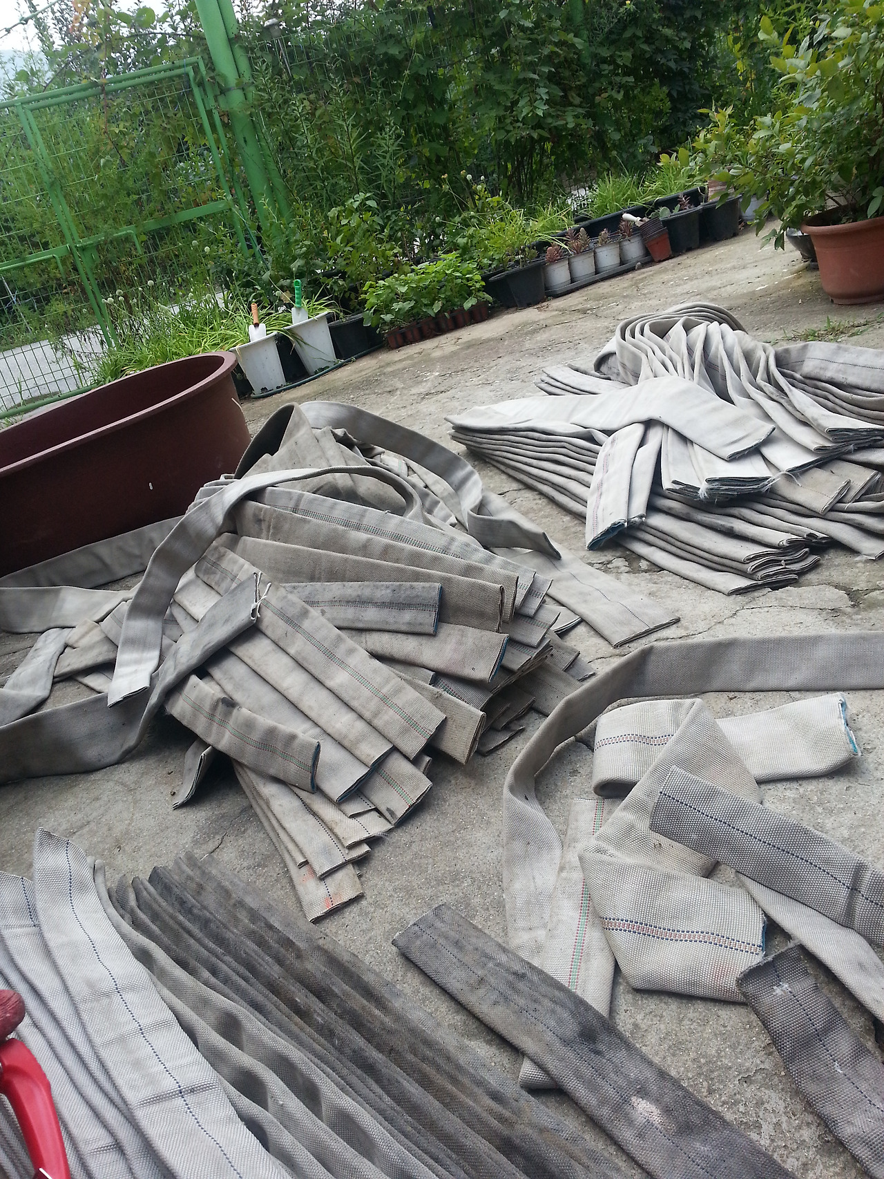 소방호스는 소방서에가서 수거를했다. 아버지의 도움으로 인근 소방서를 중심으로 조금씩 수거를 할수있었다. 수거한 소방호스를 세척했다. 업사이클링의 개념이 당시에 없었던 나는 어떻게든 소방호스를 하얗게 만들어보려고 무단히 노력했다.
