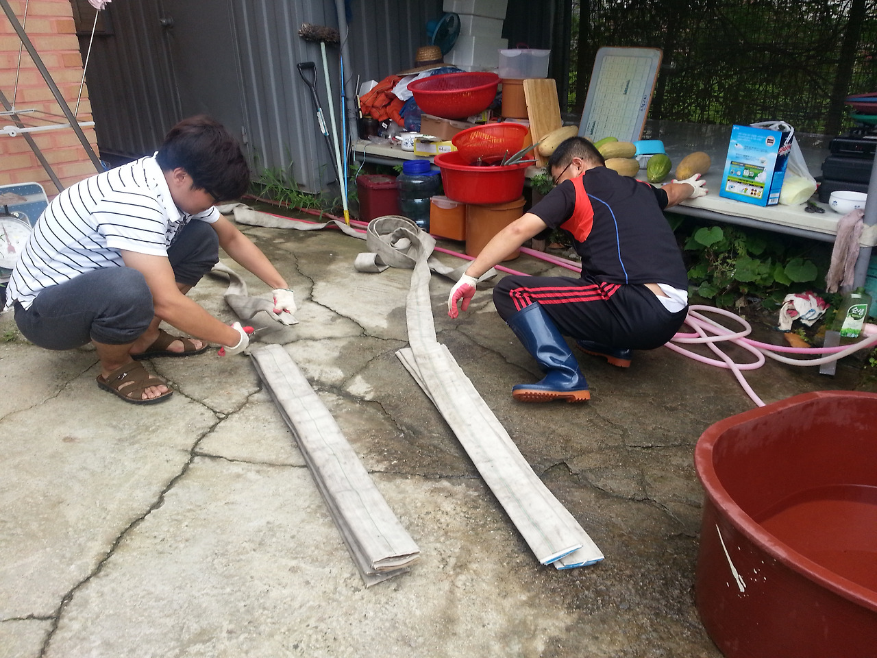 지금은 이런식으로 세척하지않고 기계를 사용하여 세척하지만, 초반에는 직접 세척을했다. 호스하나하나 물때를 빼기위해 몇번씩 물에 담그고 세제로 세척을했다. 땡여름에 당시 함께했던 6명이넘는 대학생 여자 팀원들과 함께 땀을 뻘뻘흘리면서 세척을했다. 조금이라도 더 하얗게 만들어야 소비자들이 구매하지않을까하는 생각으로 락스에도 담구어보고 온갖노력을 했지만, 새거처럼 하얗게되지 않았다. 세척과정이 쉽지않았는지 이 과정에서 함께했던 대학생 친구들이 거의 다 잠수를 타거나 그만두었다.