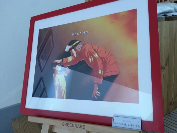 다양한 멋진 작품들이 많았지만 가장 감동적이고, 우리가 생각했던 취지와 비슷했던 작품은 "나의 아버지, 우리의 영웅"이라는 작품이였다. '아빠 일다녀올께!'라며 나가는 아빠의 뒷모습을 보며 아들은 무슨 생각을 했을까. 물론 소방관을 가족으로 둔 나 그리고 이외에 다른 분들은 충분히 공감되었으리라 생각되었다.