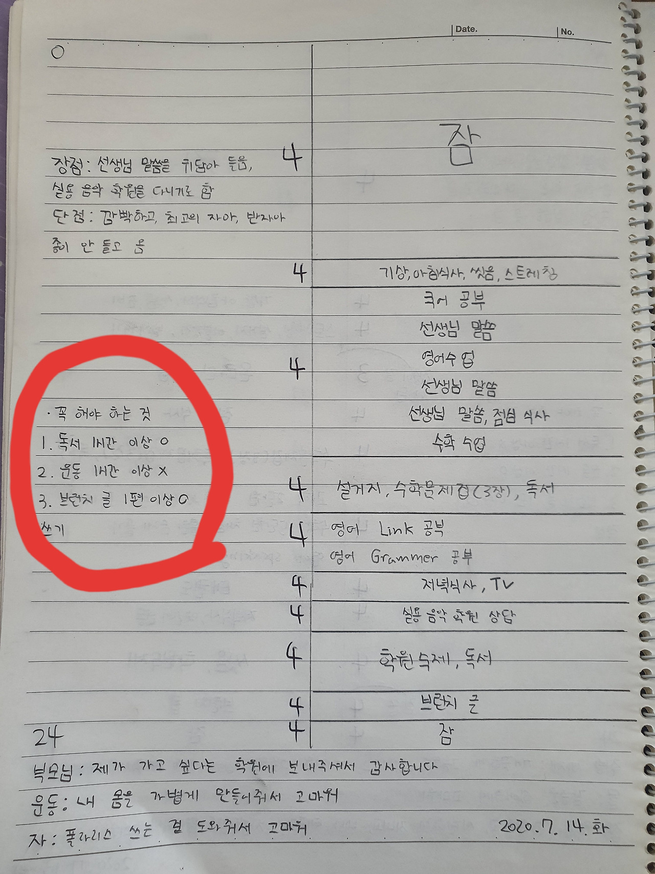그날은 데일리 리포트를 제출하는 첫 번째 날이었다. 첫날이었기에 별 기대를 하지 않고 아이들의 숙제를 살펴보았다. 그중에 눈에 띄는 데일리 리포트가 하나 있었다. 바로 수한(가명)이의 데일리 리포트였다.