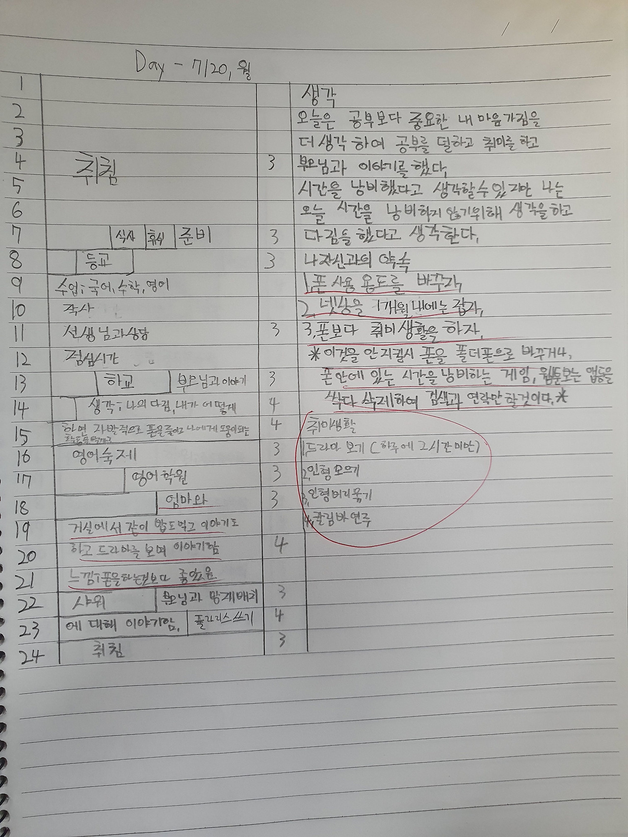 "선생님, 죄송해요. 허허... 저도 데일리 리포트를 작성하면서 알았어요. 제가 이렇게 유튜브랑 라이브 방송에 시간을 많이 낭비하고 있는 줄은 몰랐어요."