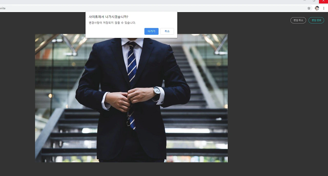 아무 생각 없이 그냥 나가기 버튼을 눌렀다. 나가기 버튼을 눌렀더니 아예 내가 쓴 글 밖으로 나가 졌고, 화면에는 내가 쓴 글이 아닌 내 브런치 메인화면이 떠있었다.