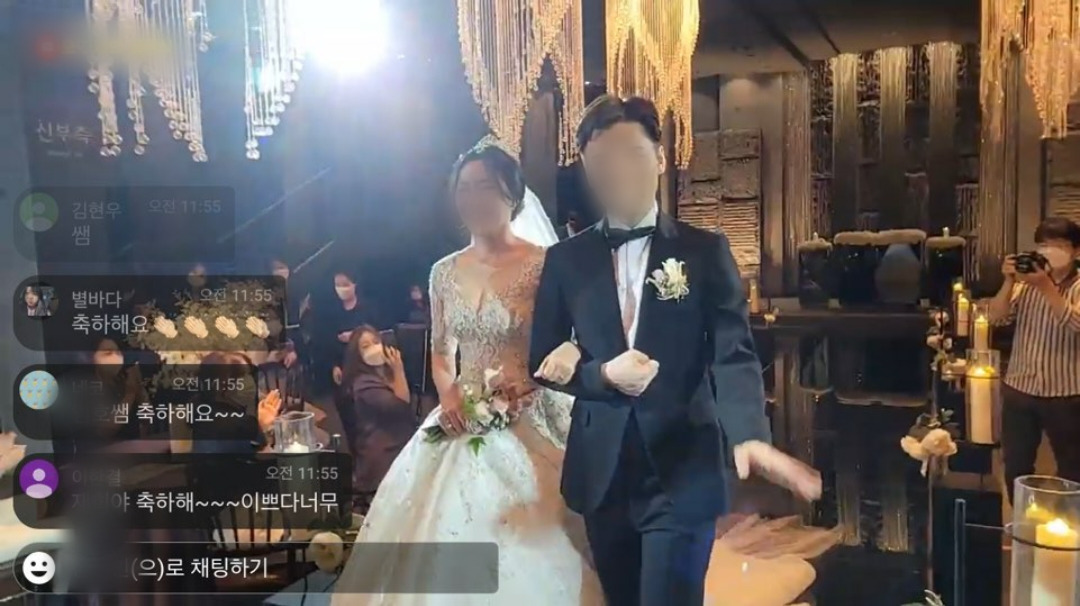 신랑, 신부 행진이 끝나고 온라인 하객들과 소통하는 모습