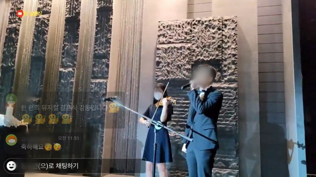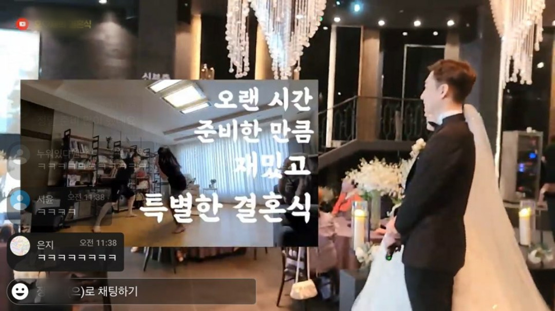 11시 18분. 프리즘 라이브 어플을 실행해, 유튜브 라이브 방송을 켰다. 방송을 켜자마자, 온라인 하객들이 라이브 방송에 참여했다.