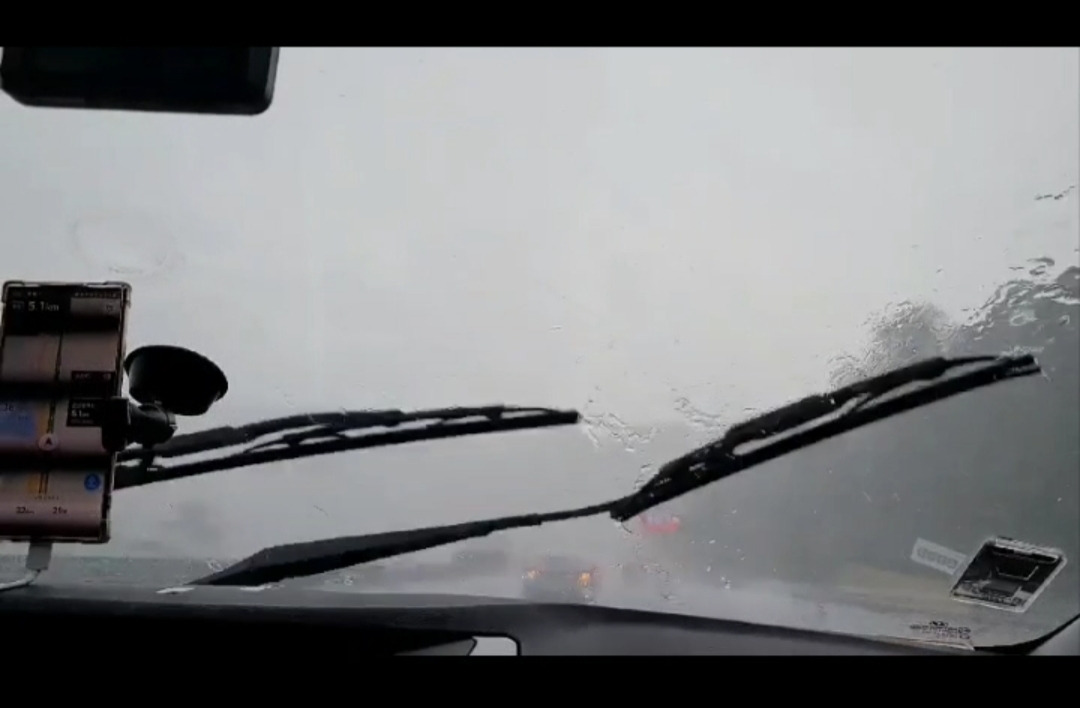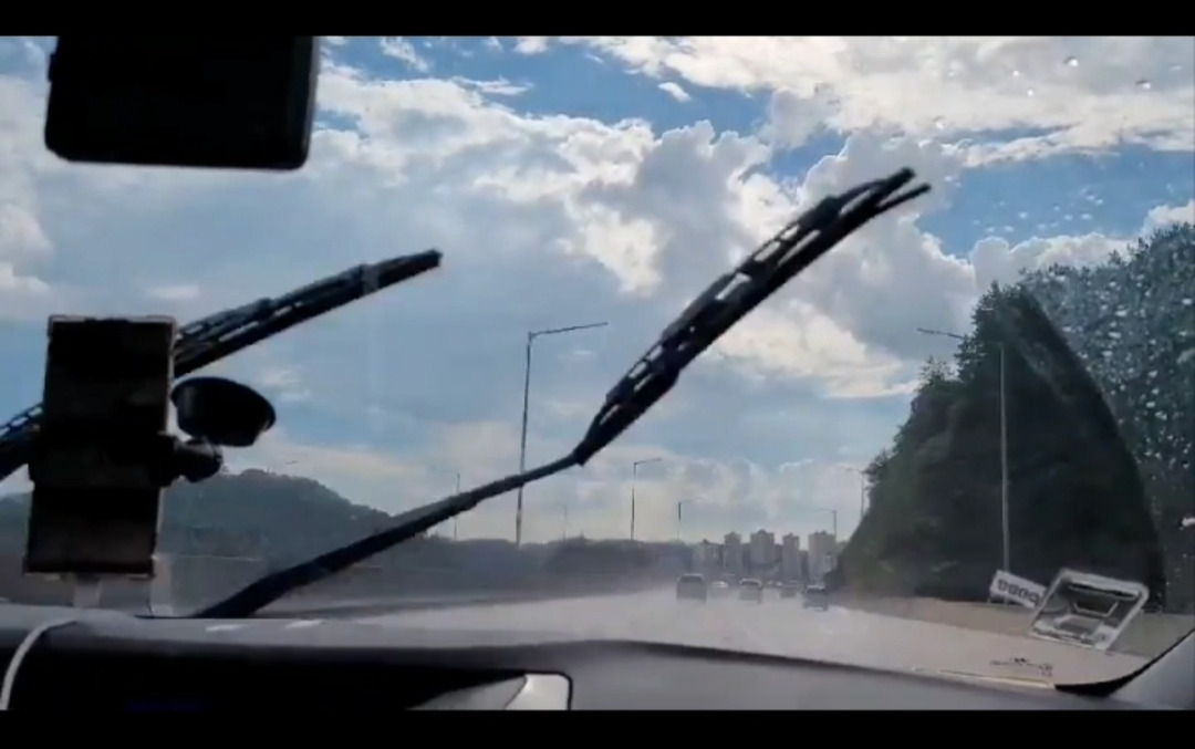 물폭탄으로 인해 한 3초 동안 눈 앞의 시야가 싹 가려졌다. 앞, 옆, 뒤에 차들이 다 있었기에 자칫하면 큰 사고가 날 수도 있는 상황이었다.