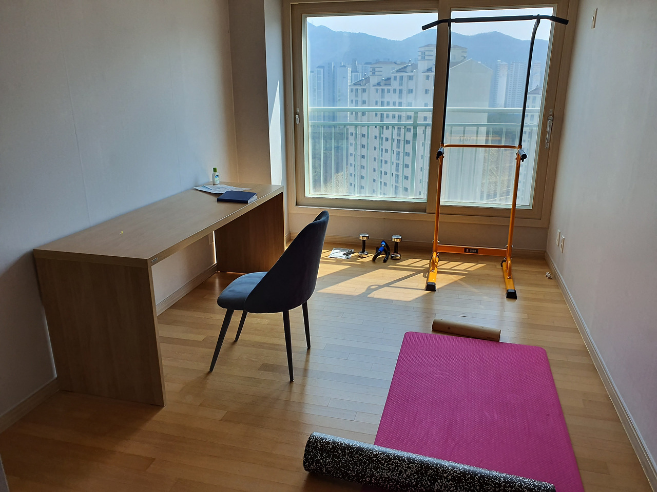 -공부방+운동방: 원래는 공부방이었으나 코로나로 인해 밖에 나가기가 힘들어서 운동기구들도 넣었다. 장소가 마땅치 않으면 이렇게 반으로 쪼개서 구역을 나누어도 된다.