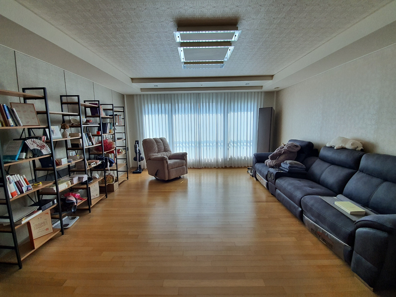 -거실: 독서를 하는 곳이다. 주방 쪽 긴소파에서는 패드를 들고와서 아내와 영화를 보기도 한다.