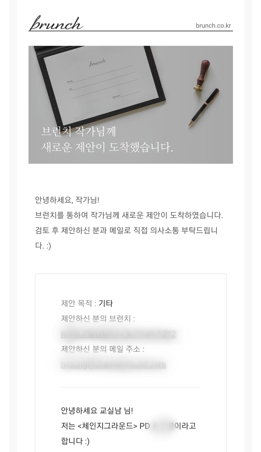 '헉... 체인지그라운드 PD님에게서 온 제안이잖아? 내가 좋아하는 신박사님, 고영성 작가님, 웅이사님이 계시는 체인지그라운드? 미쳤다, 진짜 미쳤다!!!(환호)'