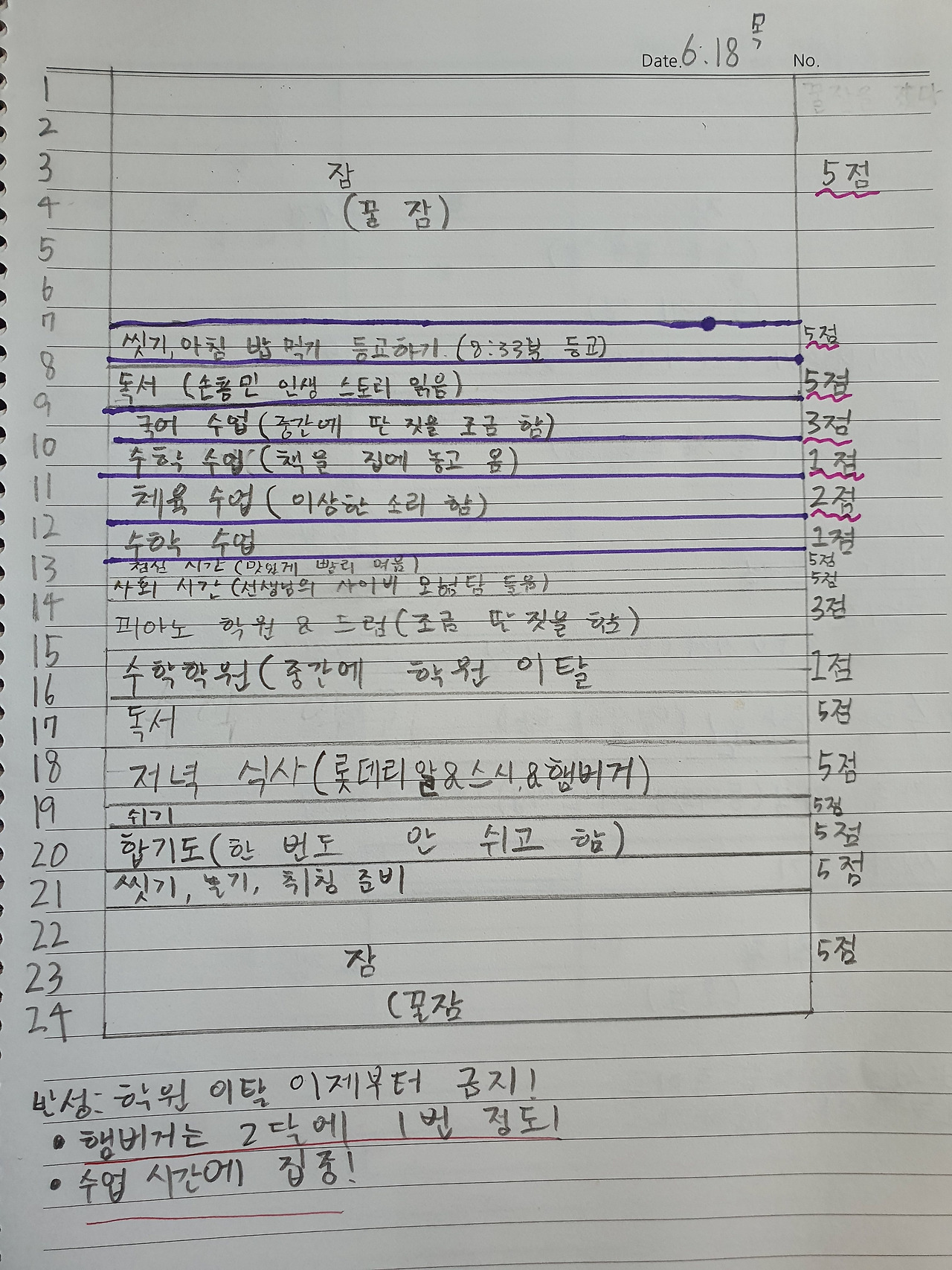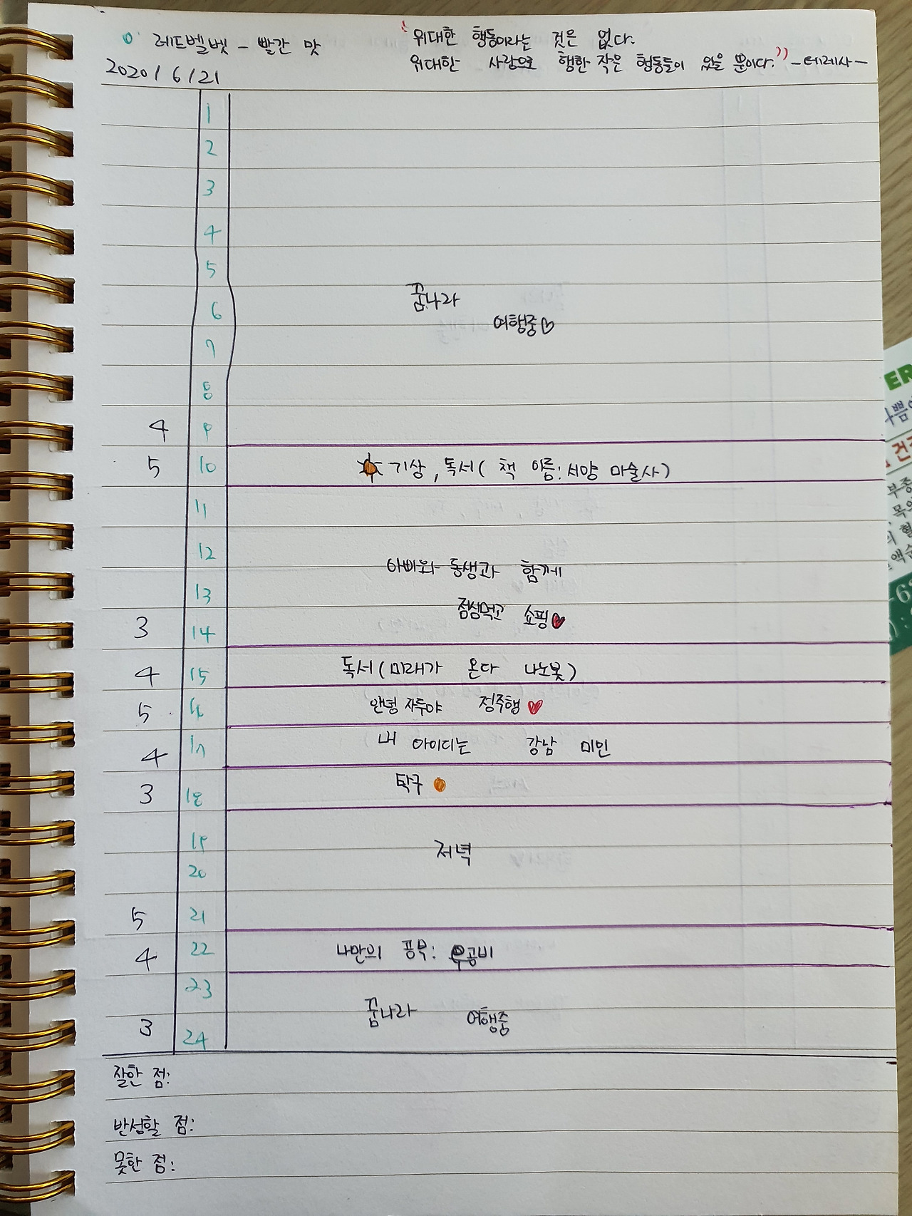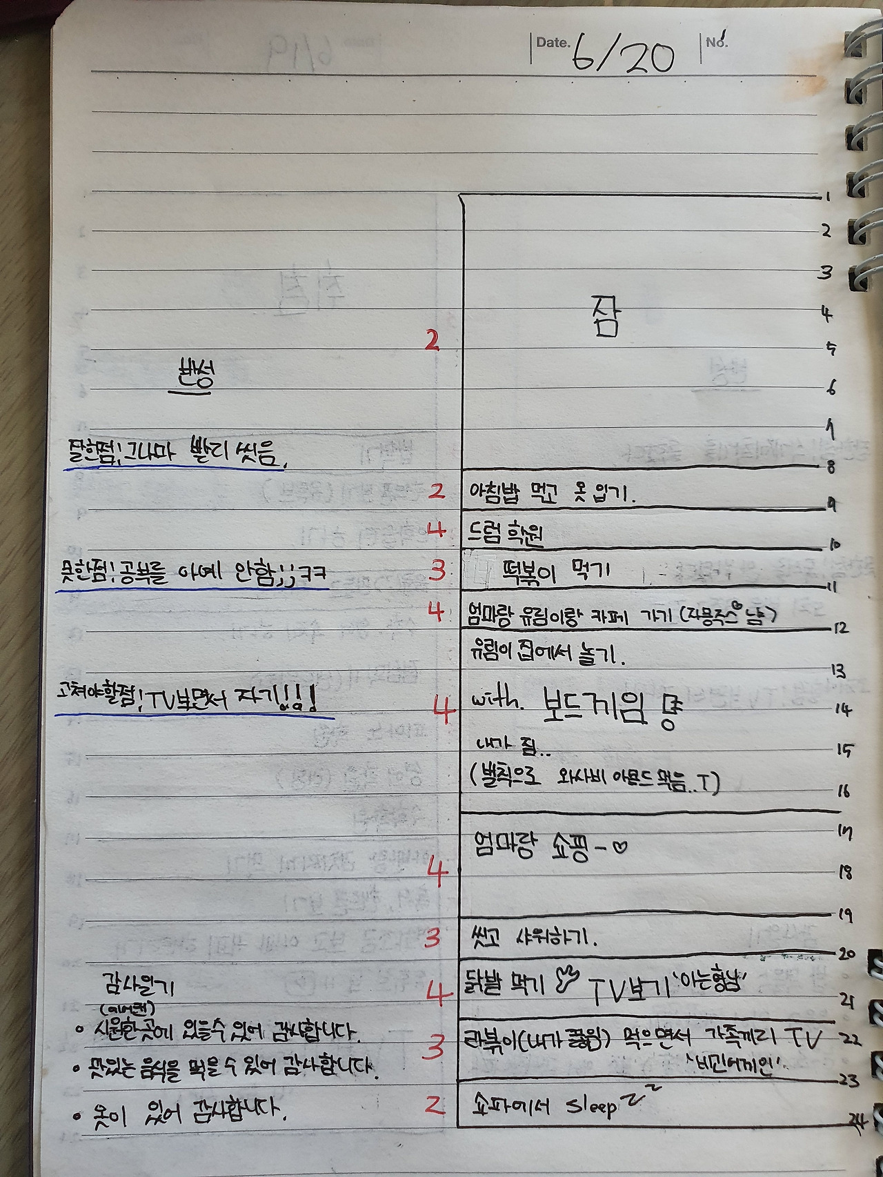 3. 하루 동안 한 일과, 몰입 정도를 보고 반성한다.