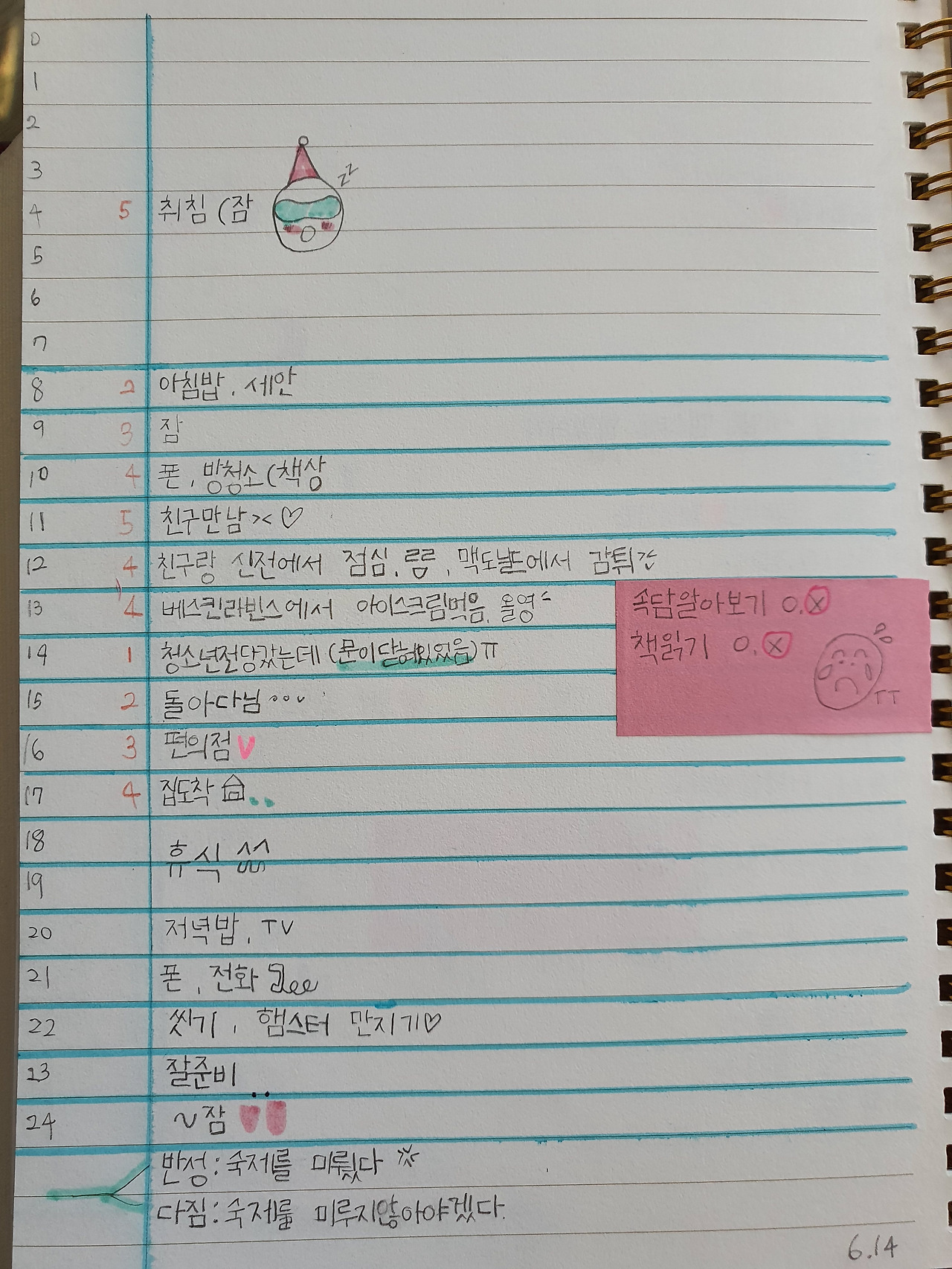 1. 매시간 한 일을 적는다.