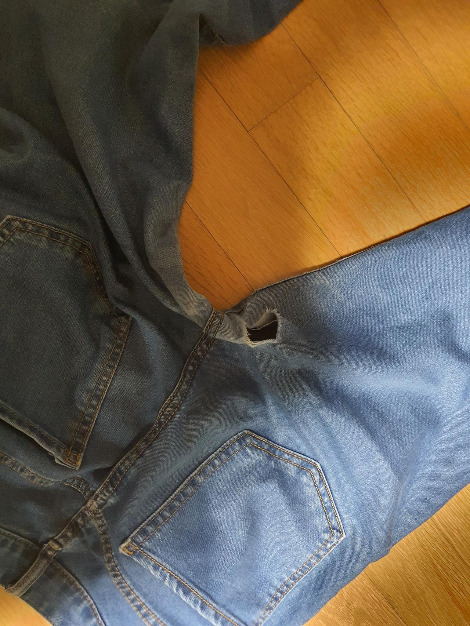 어떻게 입었길래 이렇게 찢어질까?Wow! 엄청난 구멍이다! 500원짜리 동전 1.5개는 들어갈 만한 크기의 구멍이다. 근데 왜 나는 항상 가랑이 쪽이 찢어질까...?