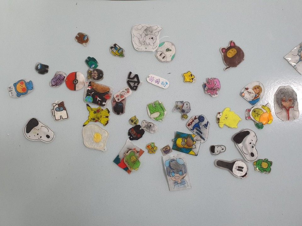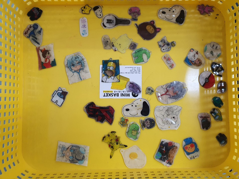 몇몇 아이들이 학교가 마친 지 2시간이 지났는데도 집에 가지를 않는다. 학교에서 오랜만에 미술활동을 하니 너무 즐겁다고 한다. 아까 자르고 남은 슈링클스를 재활용해서 계속 작품을 만드는 아이들...
