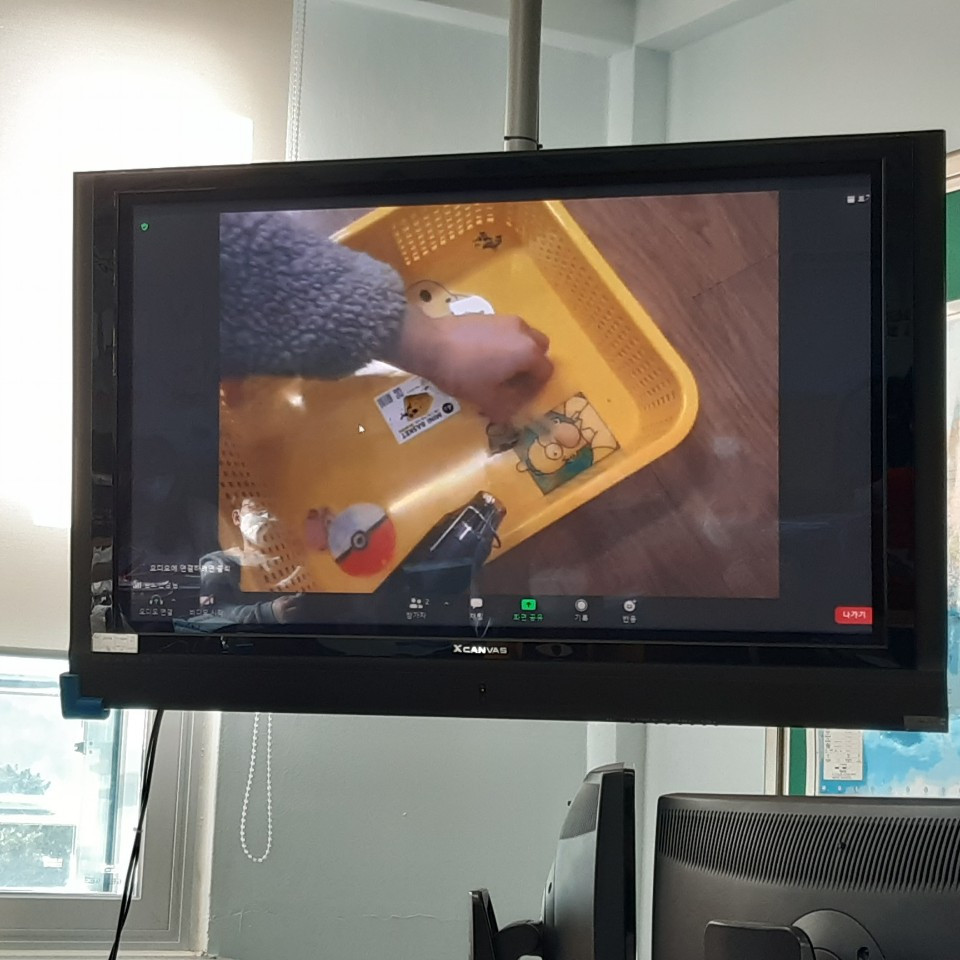 zoom을 활용해서 교실의 TV를 통해, 슈링클스를 굽는 장면을 실시간으로 보여주기로 했다. 모두가 실습 장면을 볼 수 있고, 거리두기도 되고 1석2조였다.