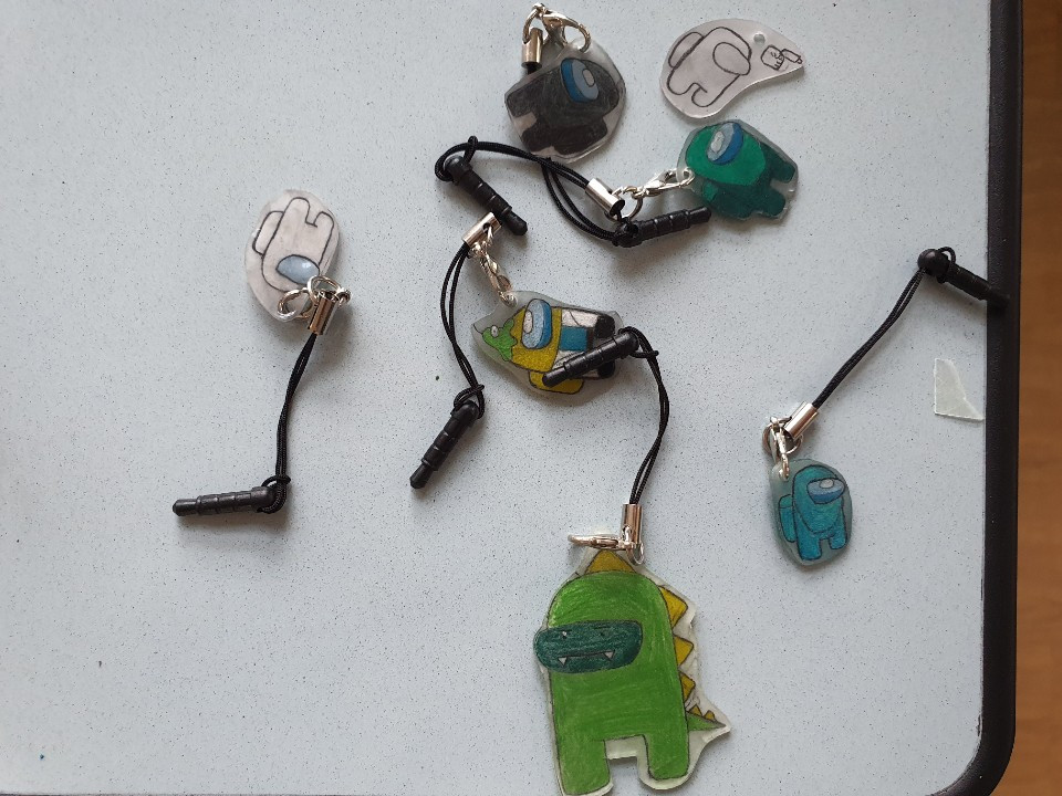 다 만든 작품들을 한데 모으니 엄청나다. 요즘 아이들이 좋아하는 캐릭터들의 총집합이다. 요새는 어몽어스 캐릭터가 대세다.