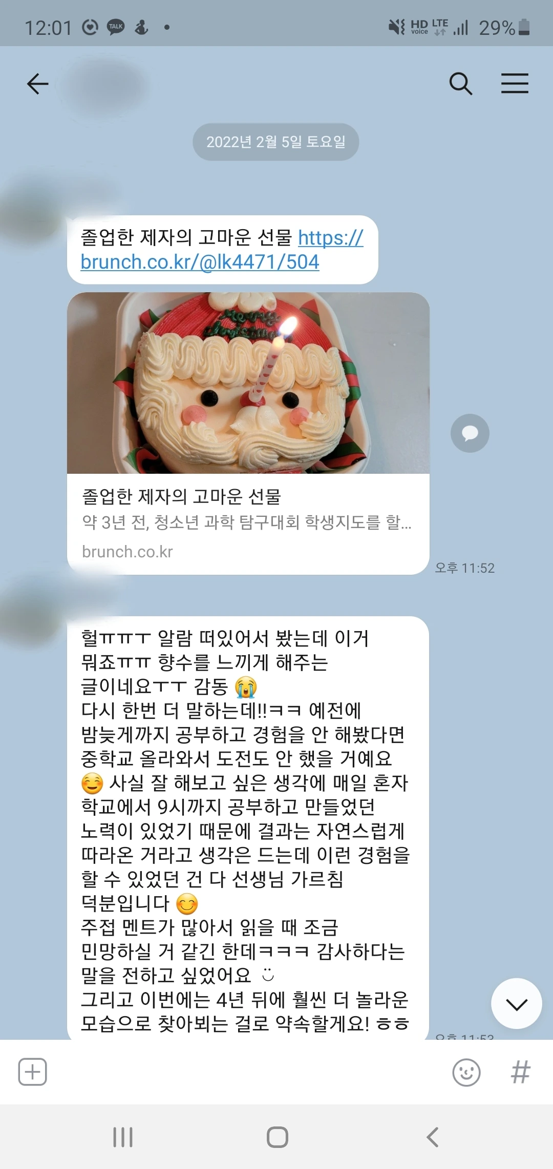 +추가) 글을 읽은 제자가 문자를 보내왔네요^^