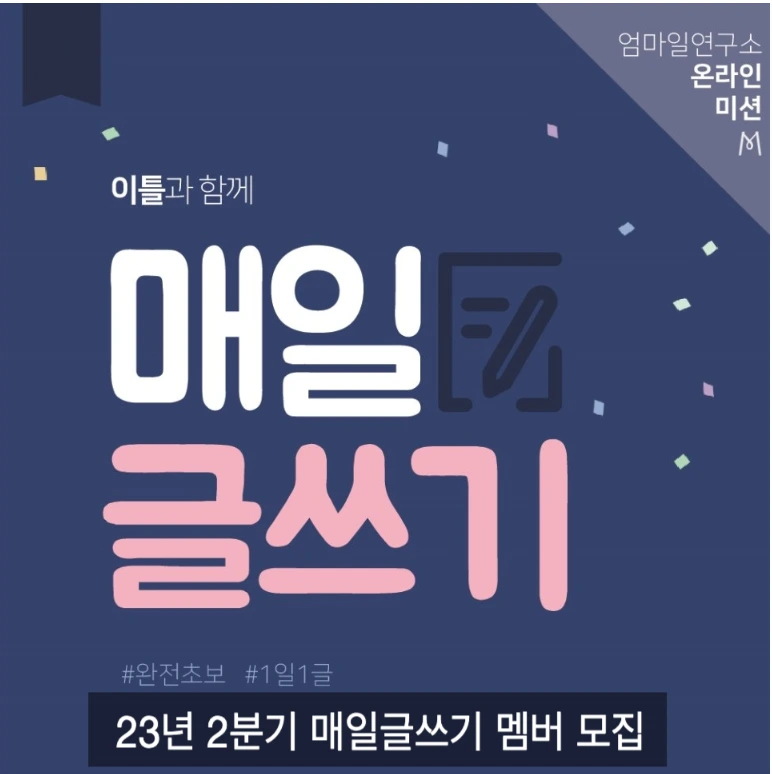 몇 달 뒤에 지금을 되돌아봤을 때, 글을 안 쓰던 시절은 기억도 안 날만큼 매일글쓰기로 풍요롭고 활기찬 하루하루를 만들어나가고 싶다.
