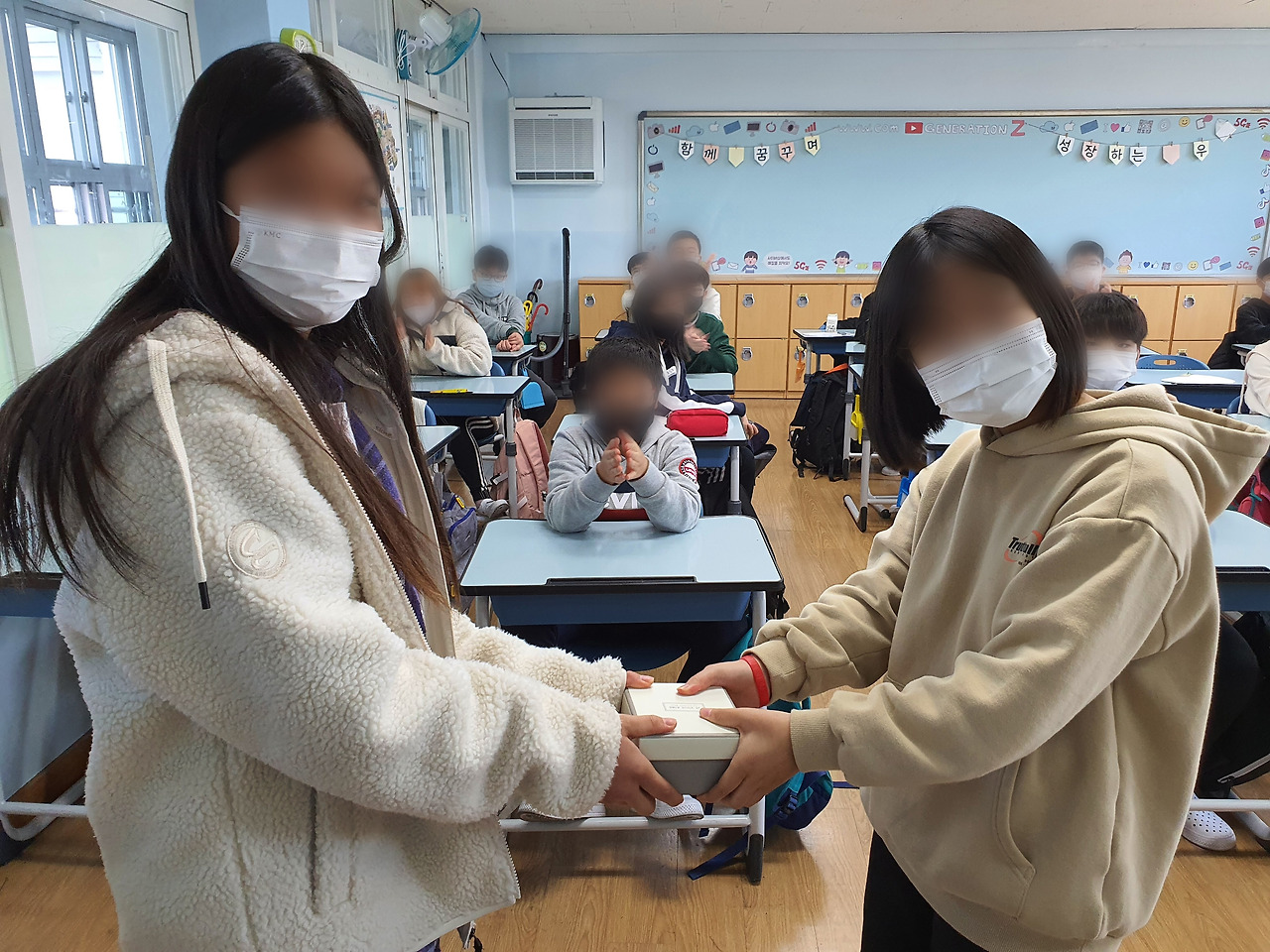 마니또의 정체가 하나씩 밝혀질수록 반 분위기는 점점 화기애애해졌습니다. 다들 선물과 편지를 받고 기분이 좋아져 있는 상태였습니다. 대부분의 학생들이 자신의 정체를 밝혔고, 이제 남은 사람은 얼마 되지 않았습니다.