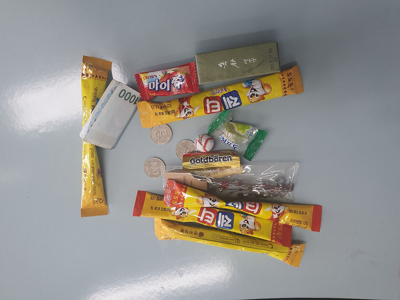 그렇게 해서 진석이의 책상 위에는 아이들의 코 묻은 선물들이 하나둘씩 쌓이기 시작했습니다.