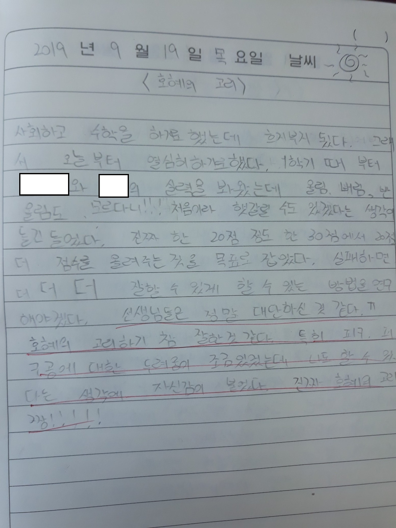 작년 우리 반 학생의 일기