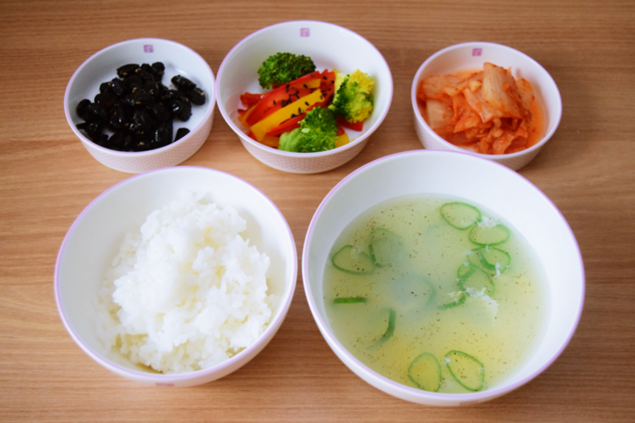 예쁜 그릇에 반찬과 밥 그리고 국을 담아서