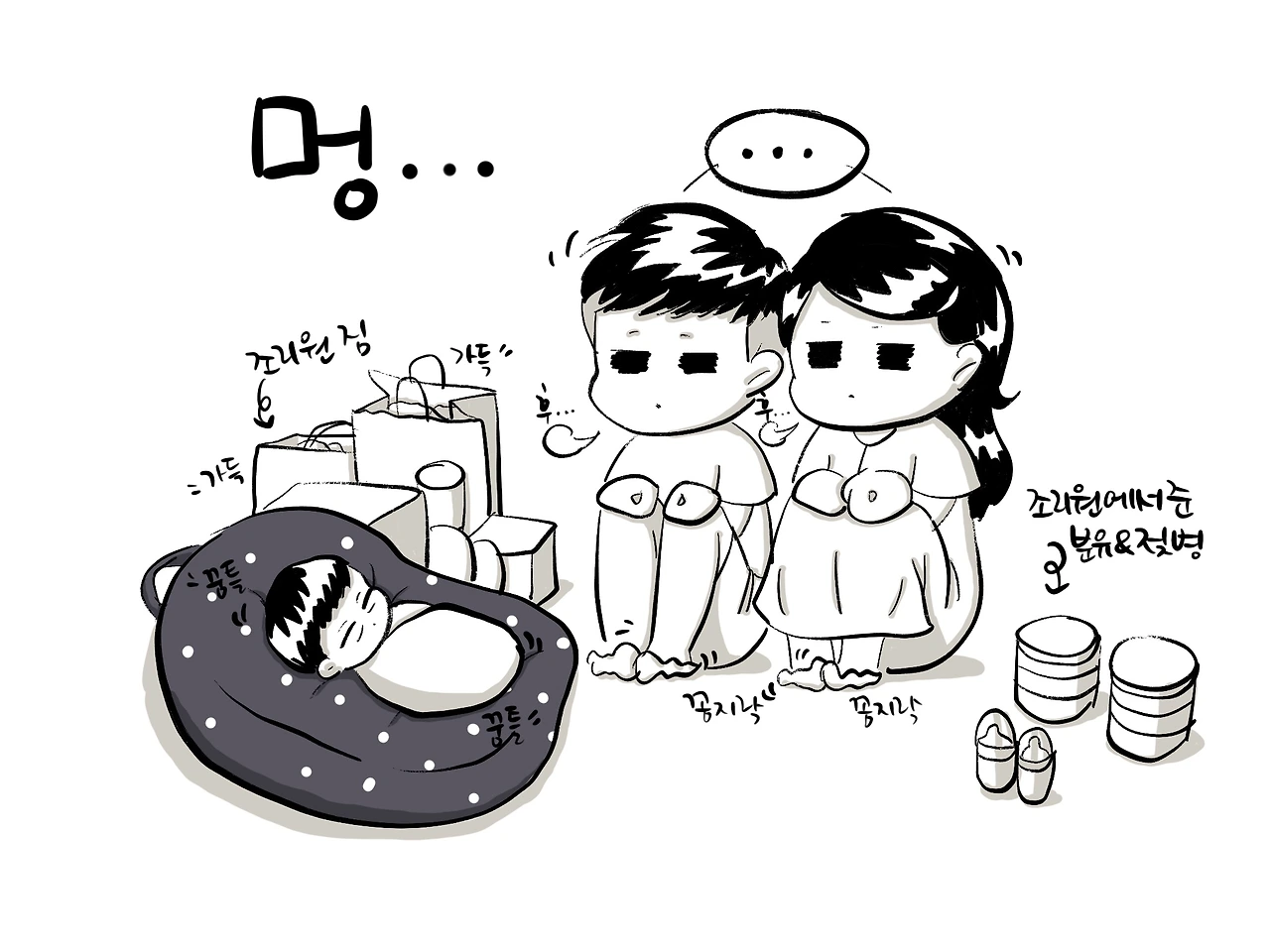 조리원에서도 분명 봤던 모습이었지만, 막상 집에서 보니 다 심각해 보였다.