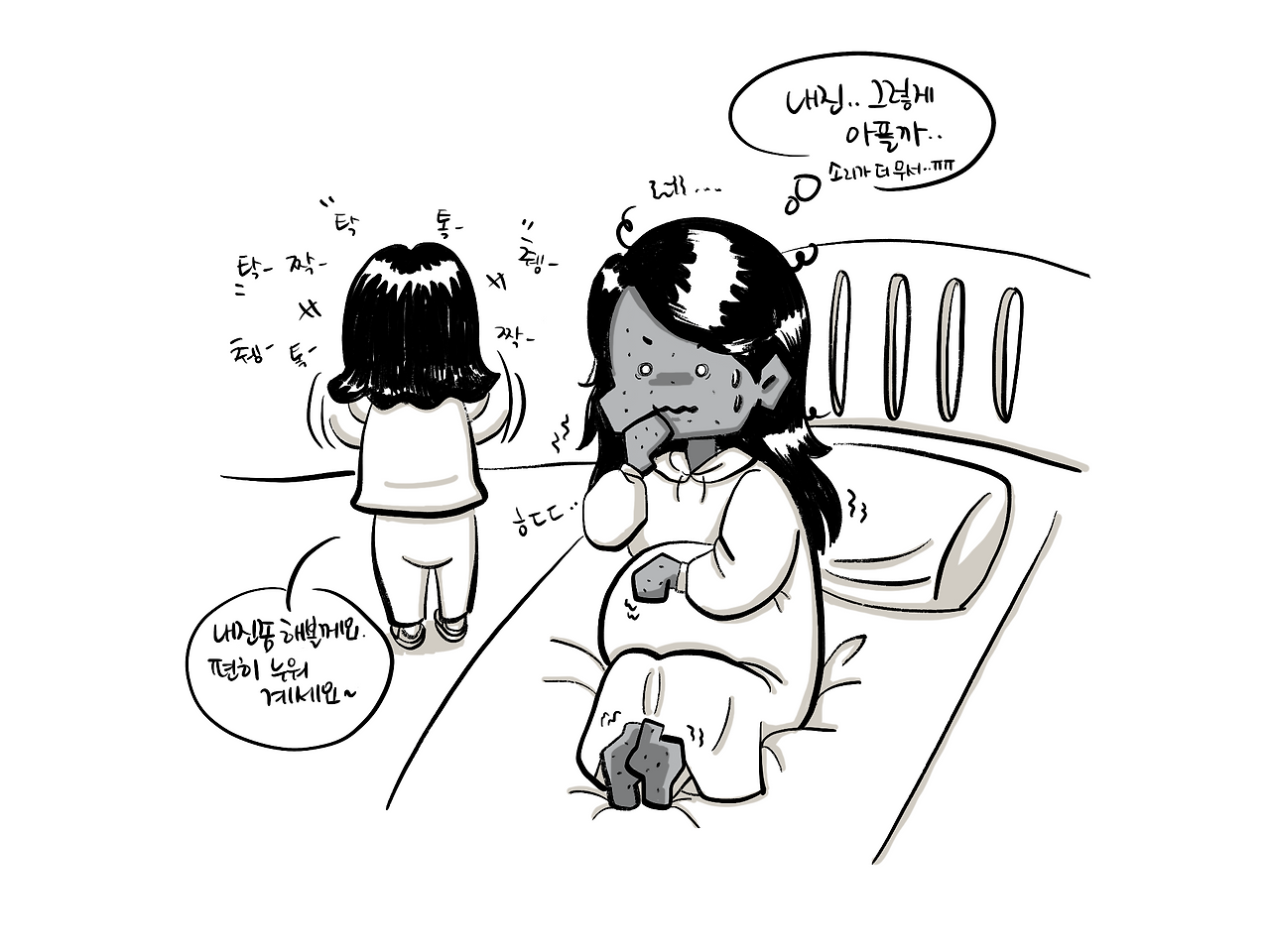 오빠는 병실까지는 못 들어가고 대기.