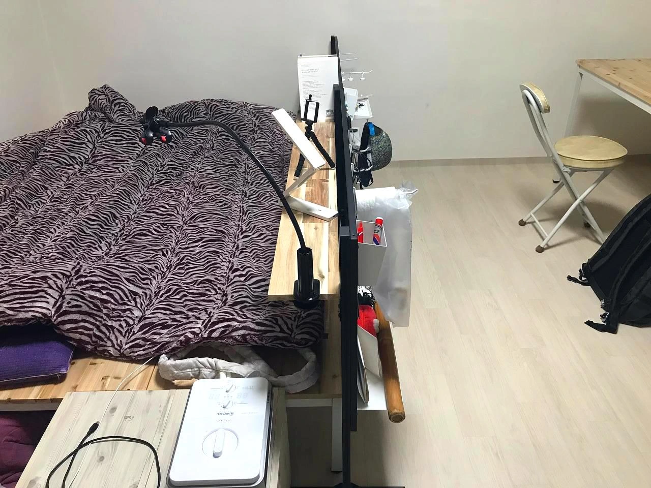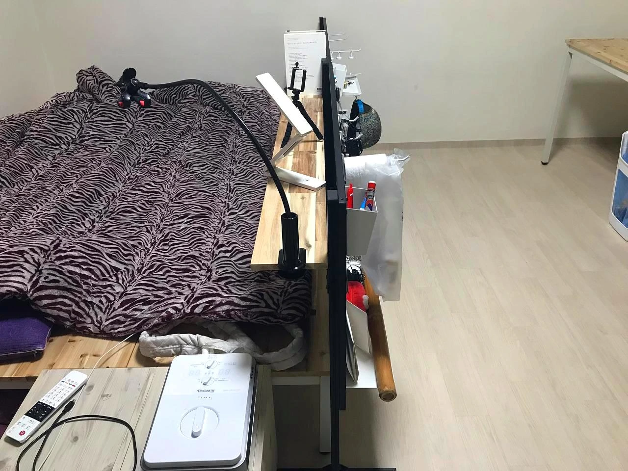 자본의 문제로 처음부터 많은 것을 바꾸진 못하고, 가장 먼저 무엇을 바꿀까 생각하다 한 공간에 작업과 잠자는 것이 모두 가능한 구조를 떠올렸다. 처음엔 벙커침대처럼 아래위를 나눠볼까 생각하다. 혼자 사용하기엔 넓은 방이었기에 좌우로 나누었다.