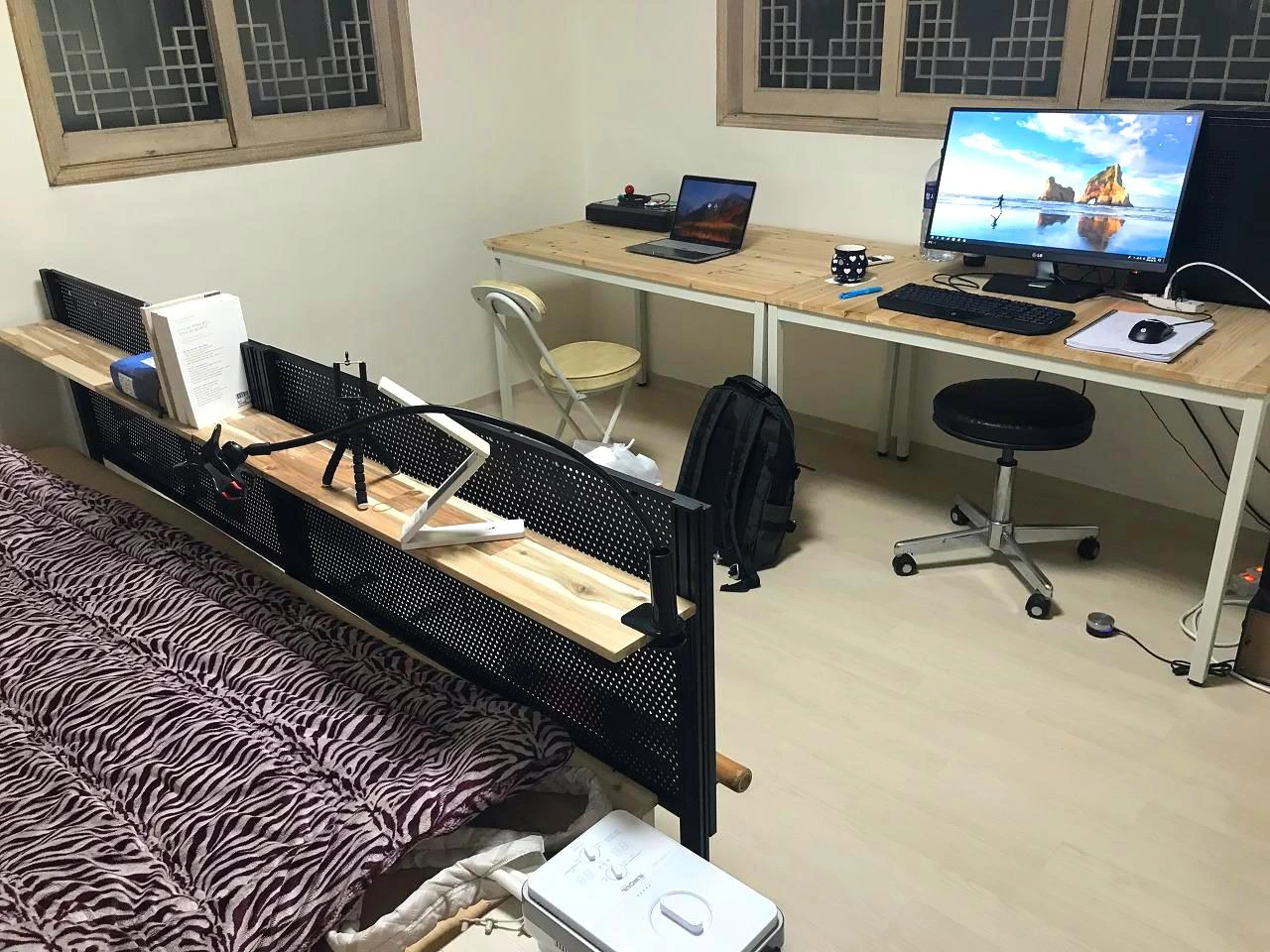 석사 동안 부전공 마냥 창의성에 대한 논문도 한편 썼고, 박사는 공학과 창의성에 대한 관계를 작성할 듯싶다. 그래서 방안을 창작의 공간으로 만들고 싶었다. (방안의 가구와 기구물은 직접 만들었다. 자본의 문제로 인테리어 완성은 먼 훗날이겠지 싶지만)