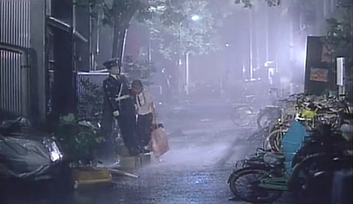 어른이 되기 위해 학교를 벗어난 청춘, 리에에게 태풍은 가혹하기만 하다. 그녀에게는 오카리나를 연주하는 것마저 허락되지 않으며, 빗속에서 울며 경찰 모형과 노래를 부를 뿐이다. 어른이 되어버린 리에는 태풍을 뚫고 돌아갈 수도 없다. 반면, 학교 안에 있는 청춘들에게는 발가벗은 축제가 허락된다. 그들은 빗속에서 리에가 구슬피 불렀던 노래를 신나게 춤을 추며 부른다.(*)